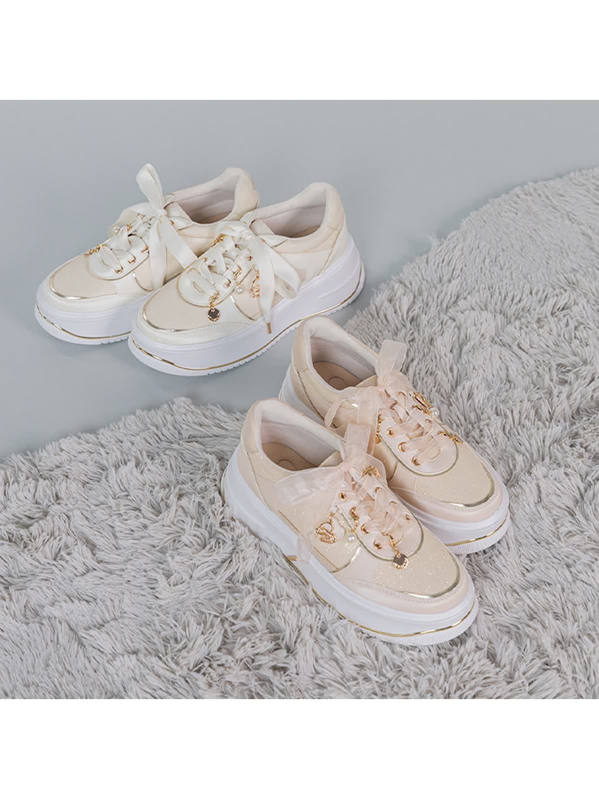 ハートコレクションオリジナルのモノグラムチャームとハートのカッティングが胸をときめかすボリュームソールスニーカー。