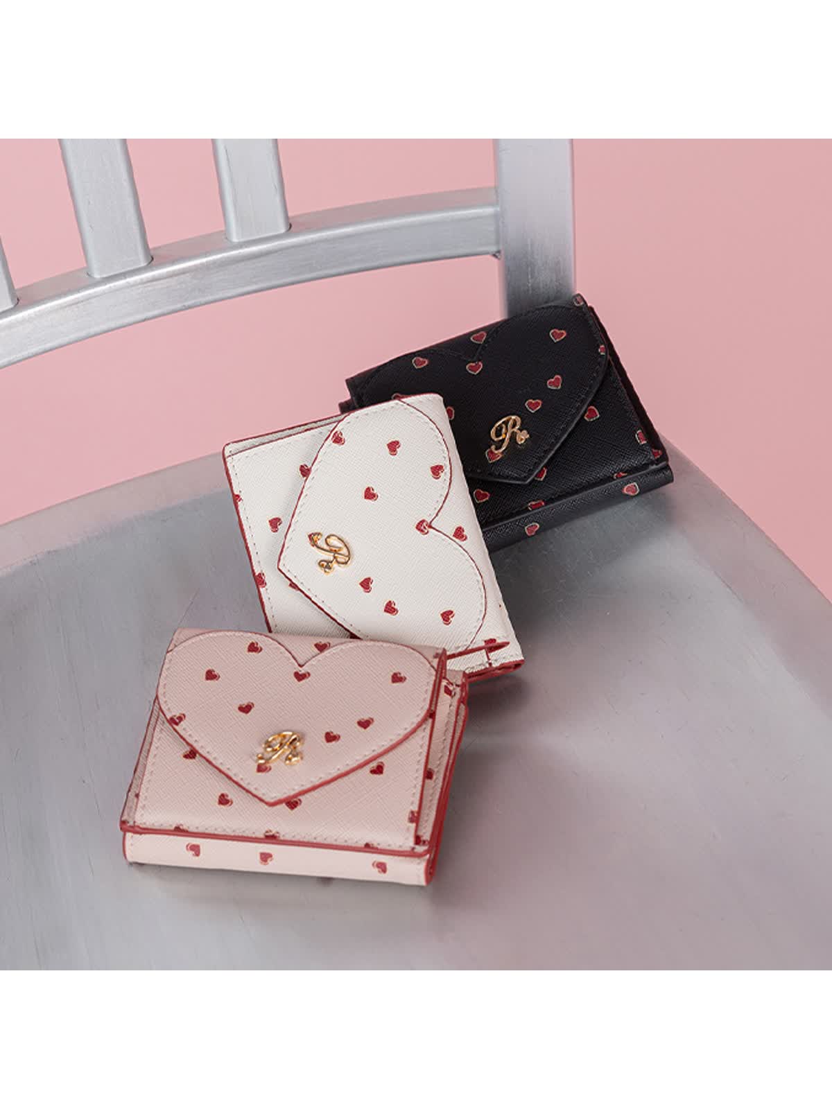 ハートカットデザインとオリジナルのハート柄が愛らしいミニウォレット。