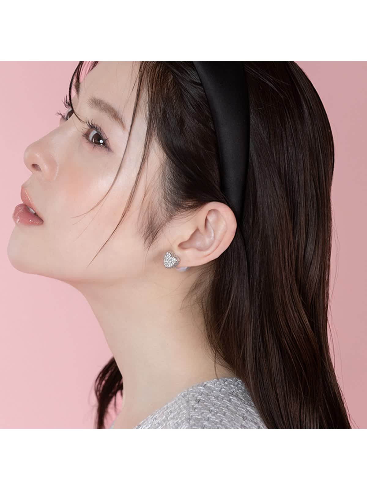 繊細なビジューを贅沢に敷き詰めたハート型のピアス。