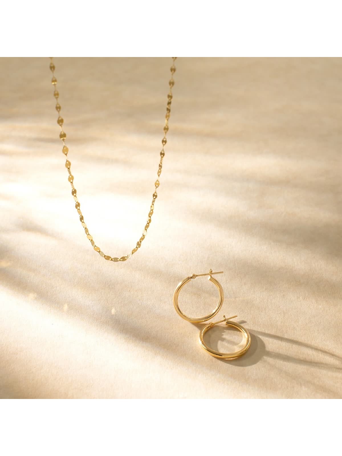 イエローゴールドの地金フープピアスは、 シンプルなフープピアスはスタイリングがしやすいベーシックアイテム。