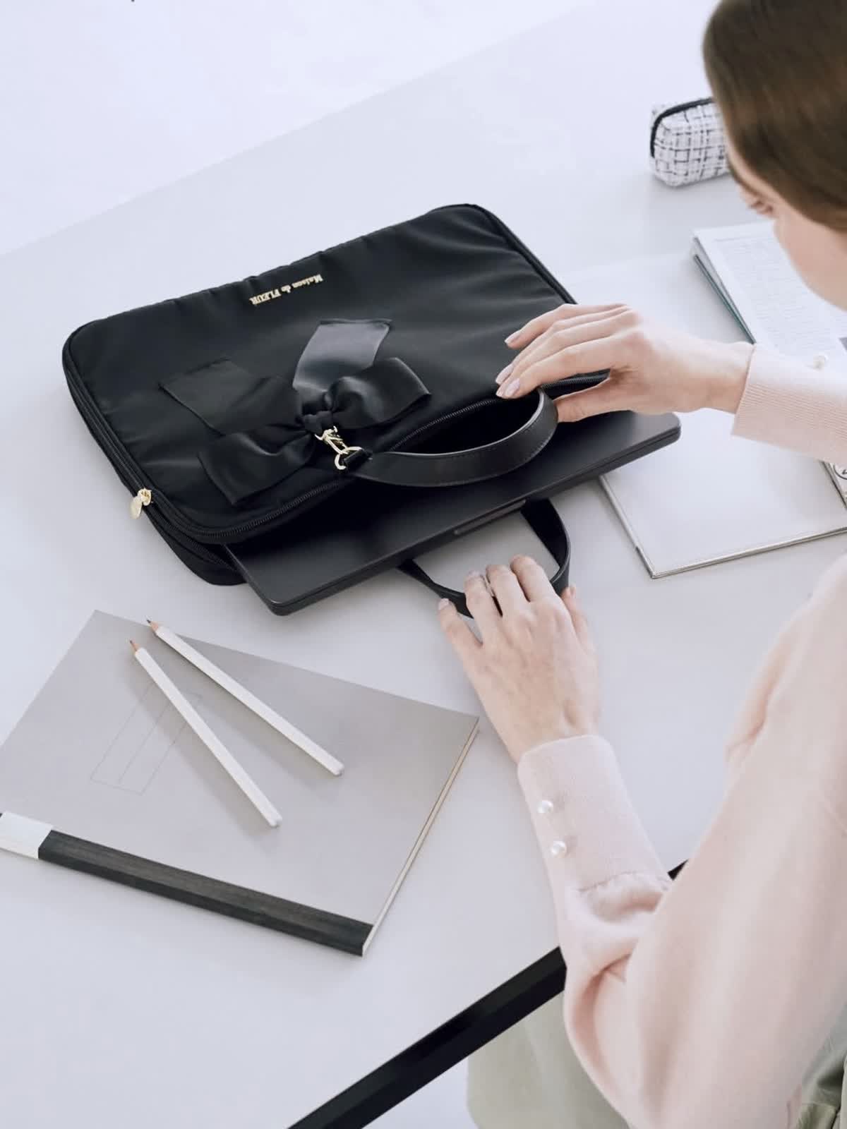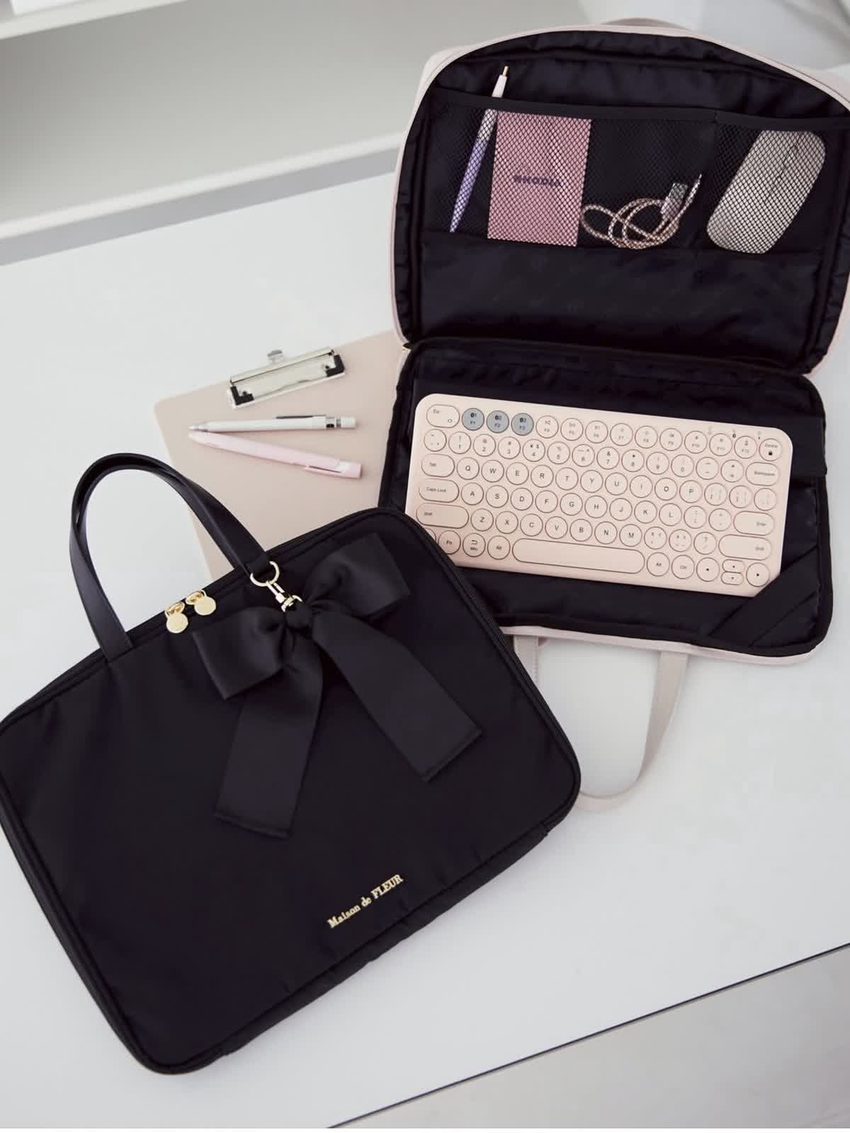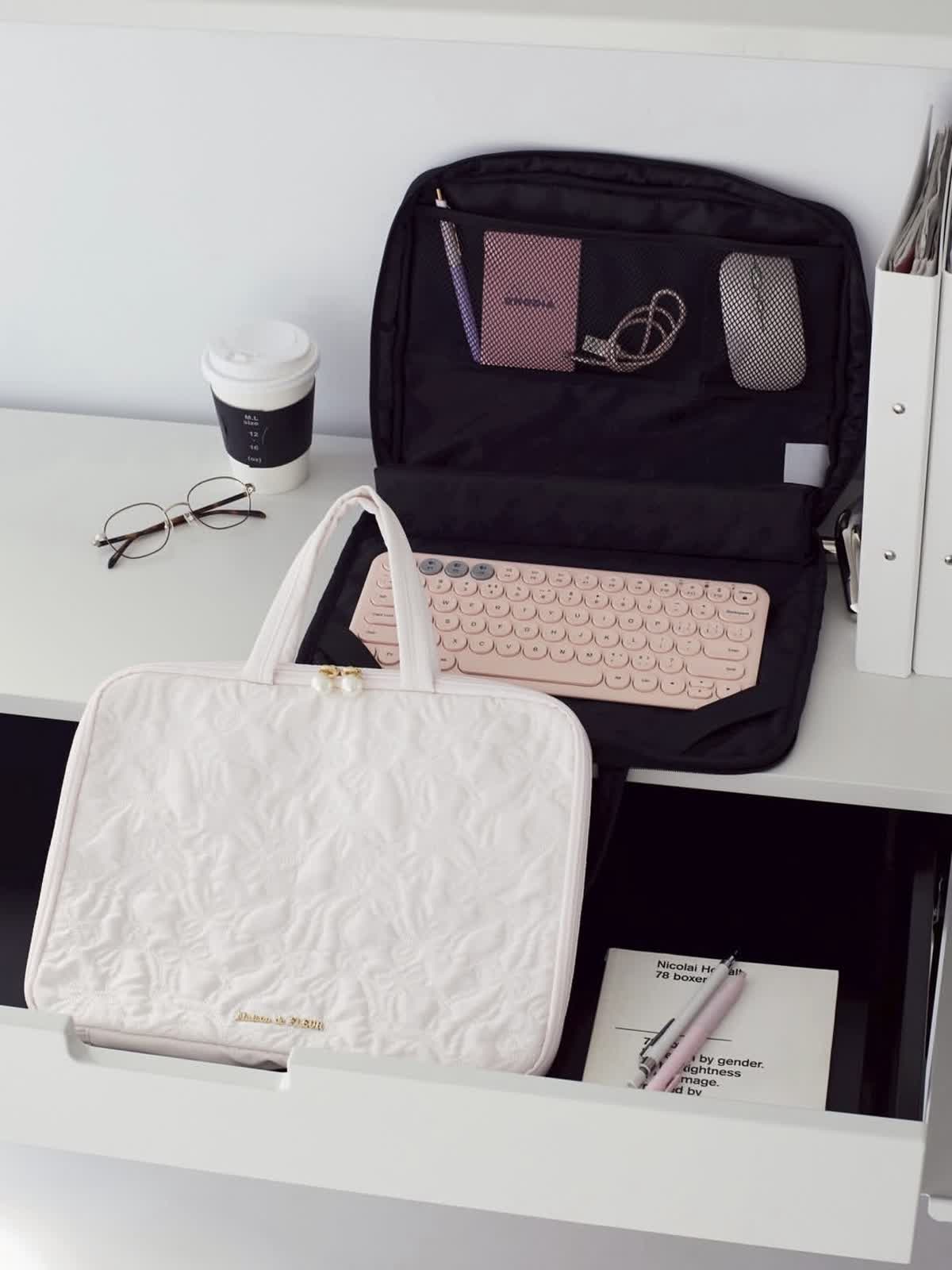 コード類やマウスの収納に便利なメッシュ素材のポケット付き◎