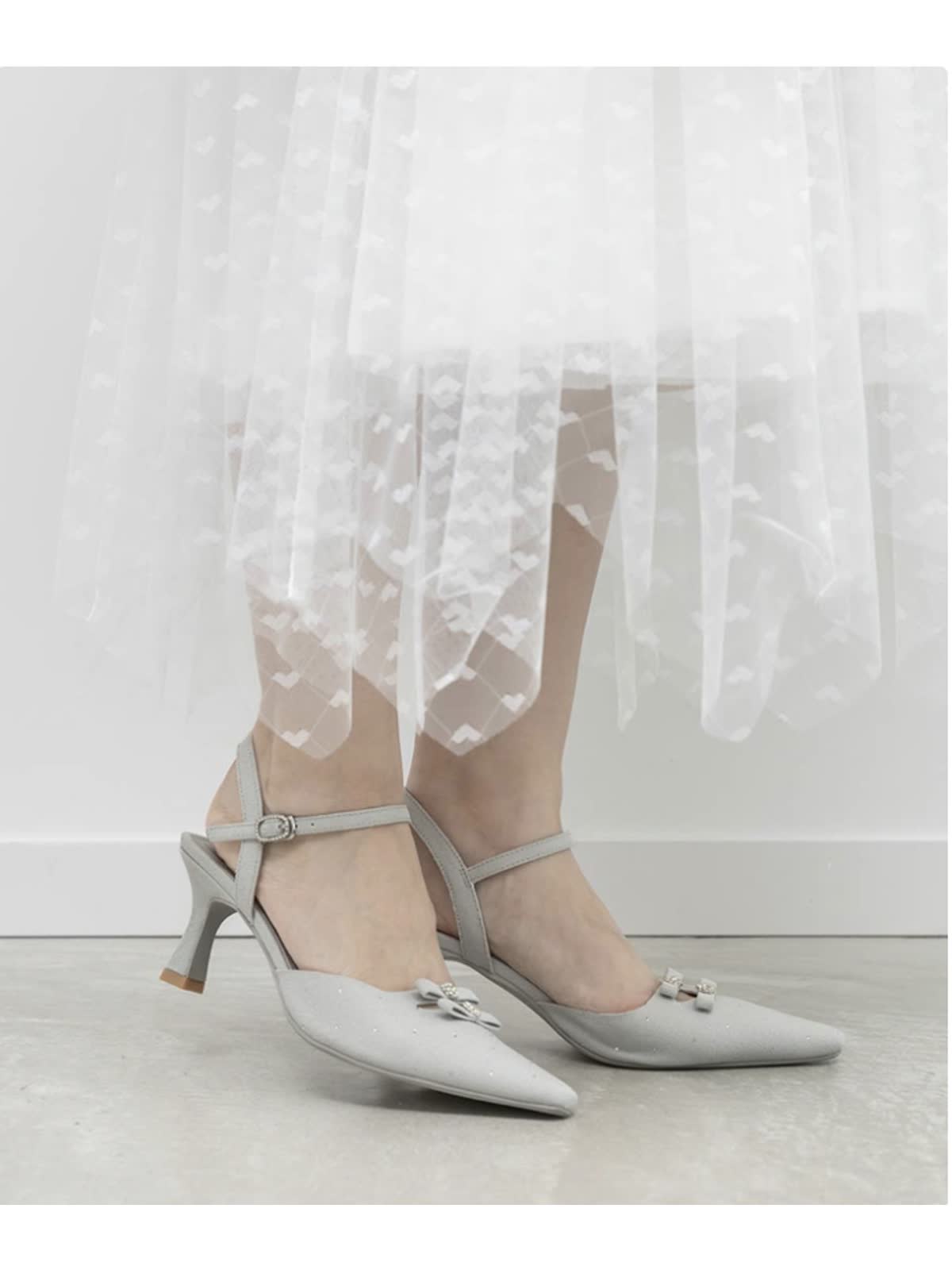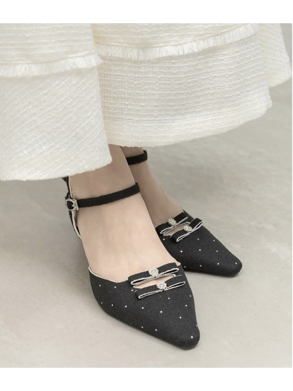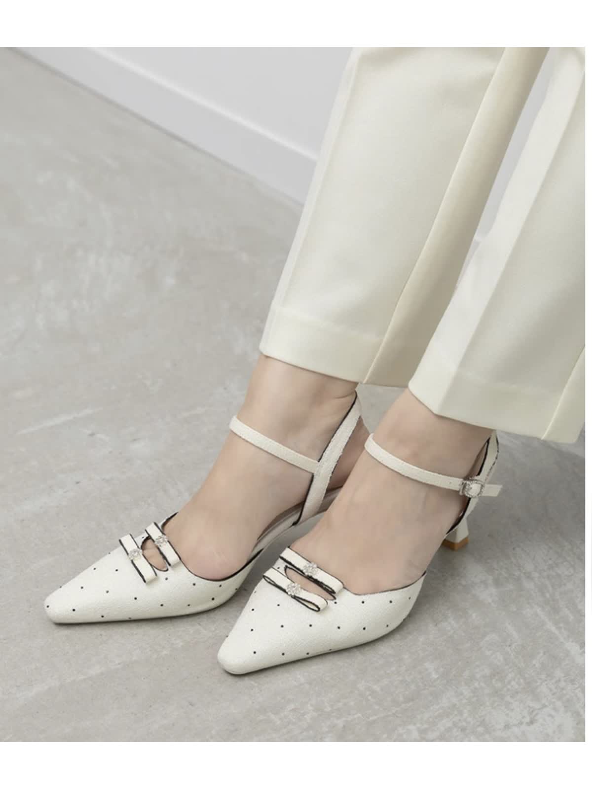 女性らしいリボンディティールがポイントのストラップパンプス。