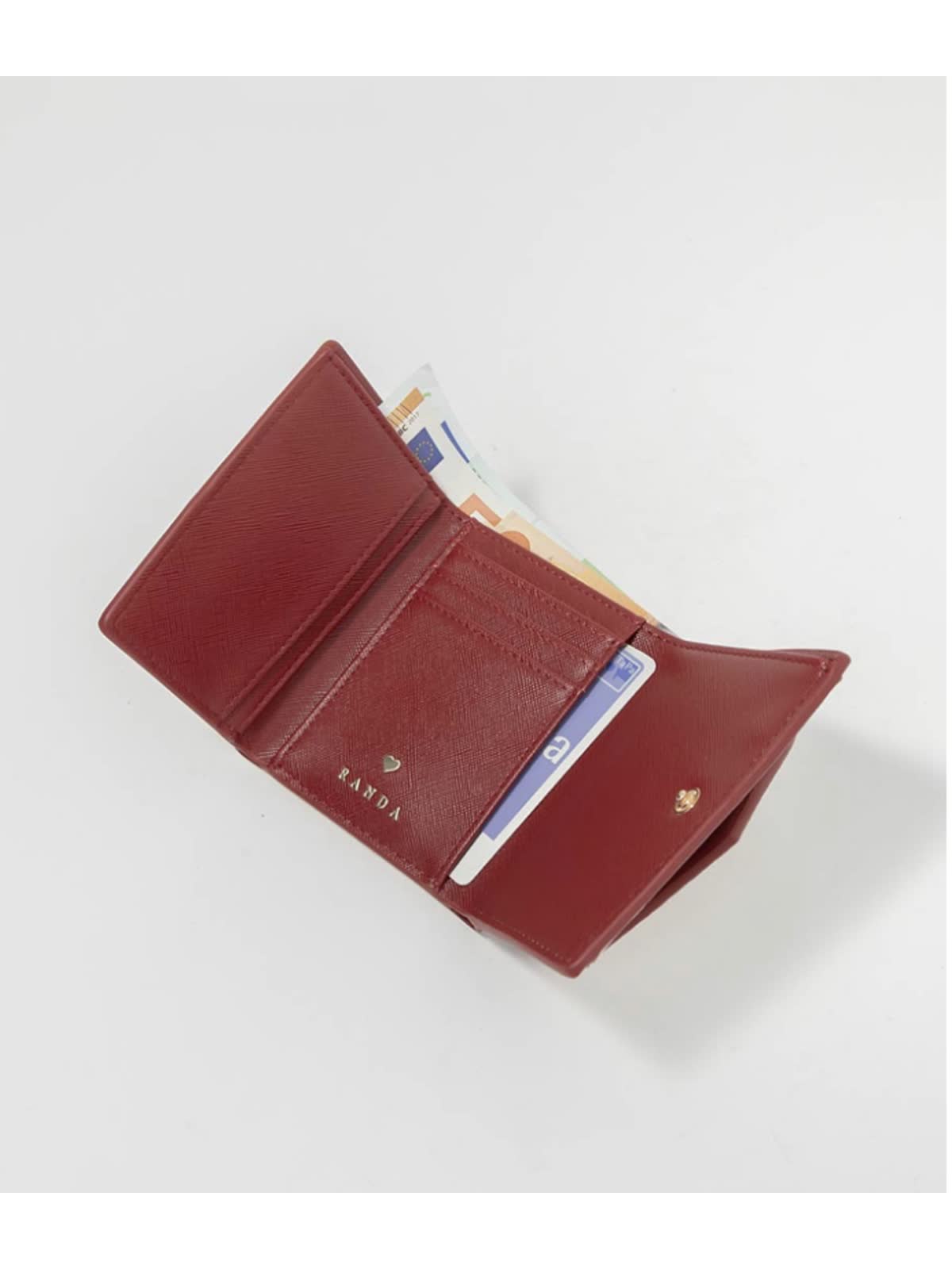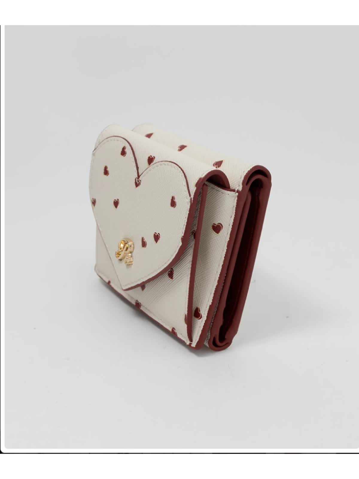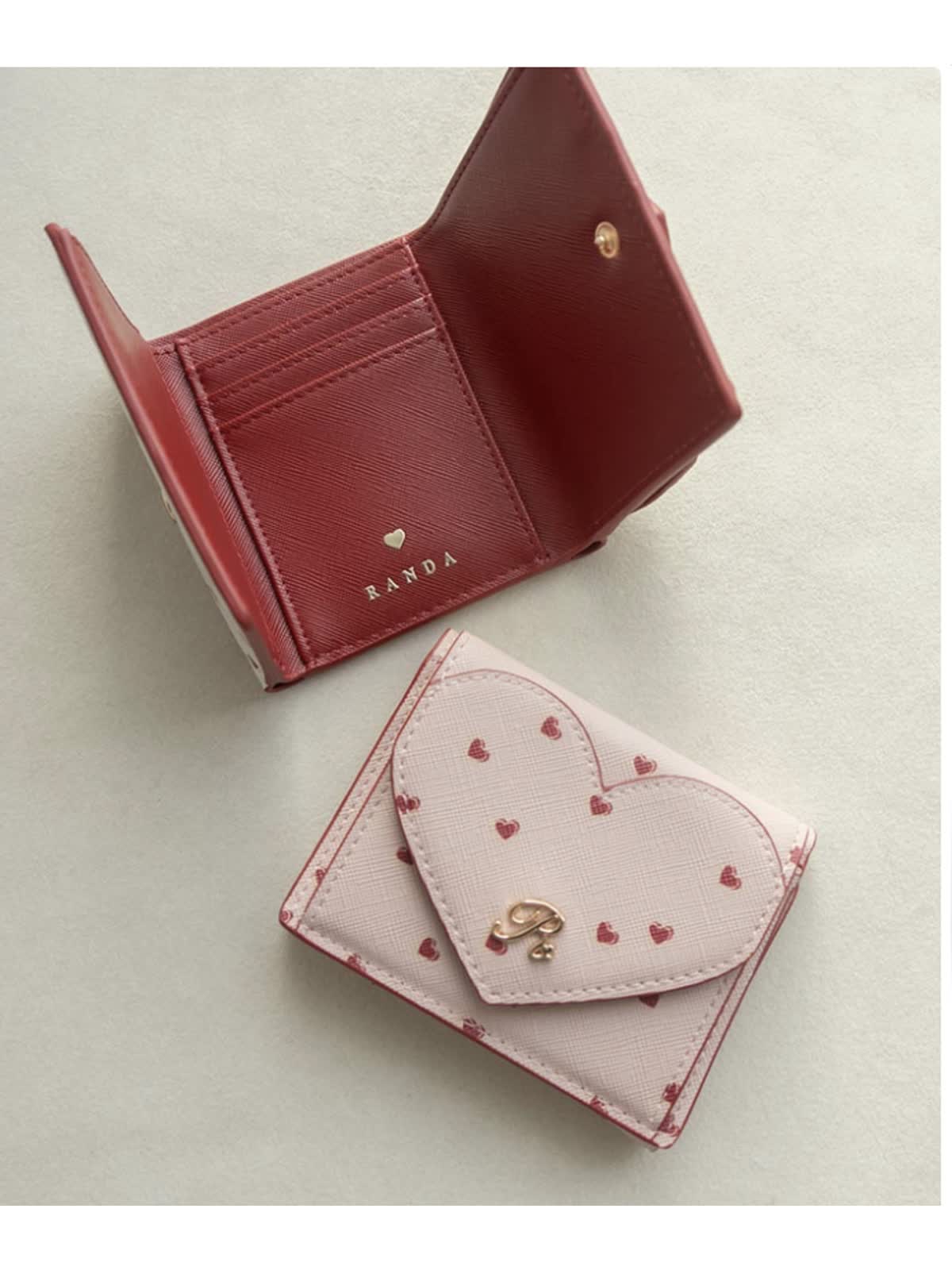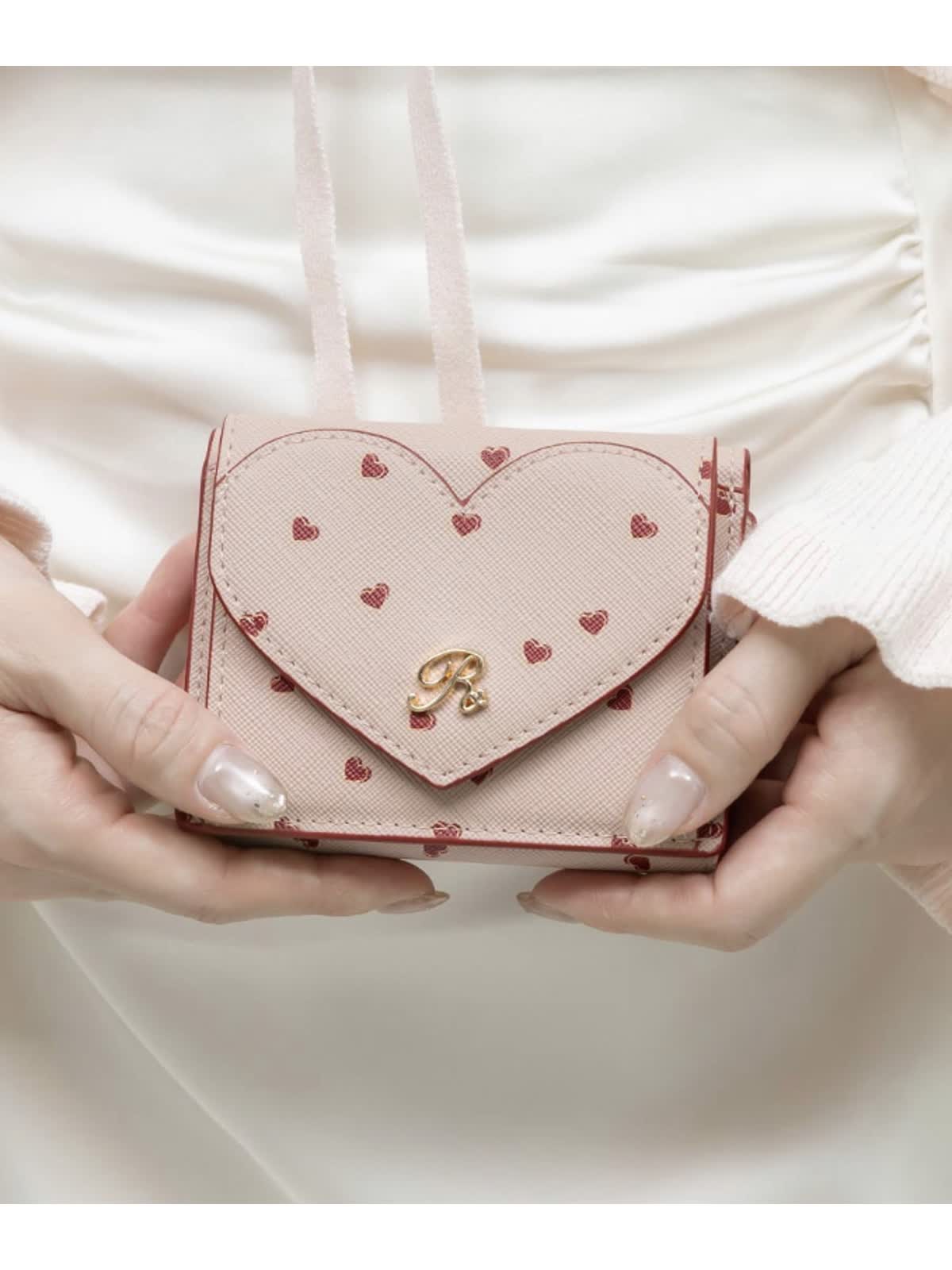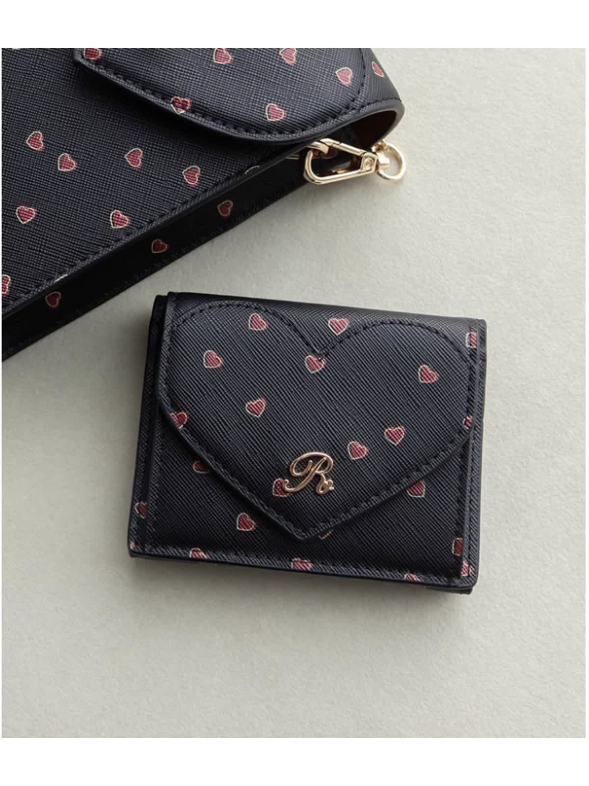 ハートカットデザインとオリジナルのハート柄が愛らしいミニウォレット。
