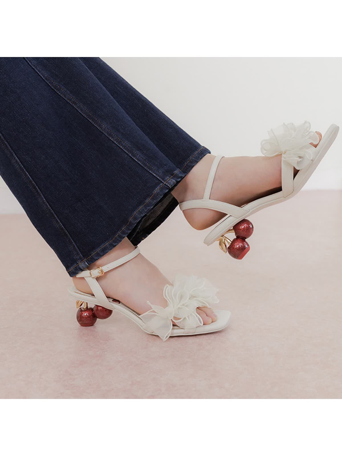 遊び心たっぷりのアイコニックなチェリーヒールが目を惹くストラップサンダル。