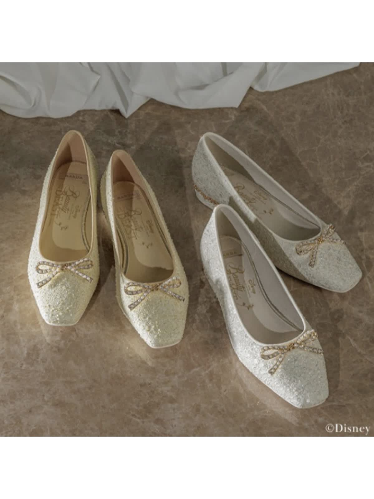 「ベル」の華やかなドレスをイメージしたフロントのリボンも煌びやかなロマンティックな1足です。