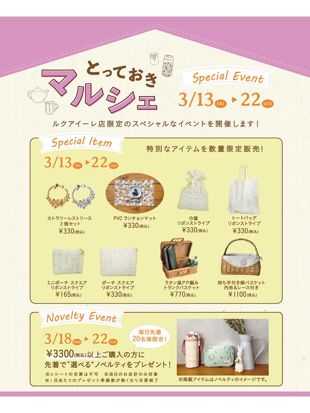 春のお部屋を彩ってくれる、バスケットやランチョンマットなどspecialなアイテムを数量限定で販売🧺