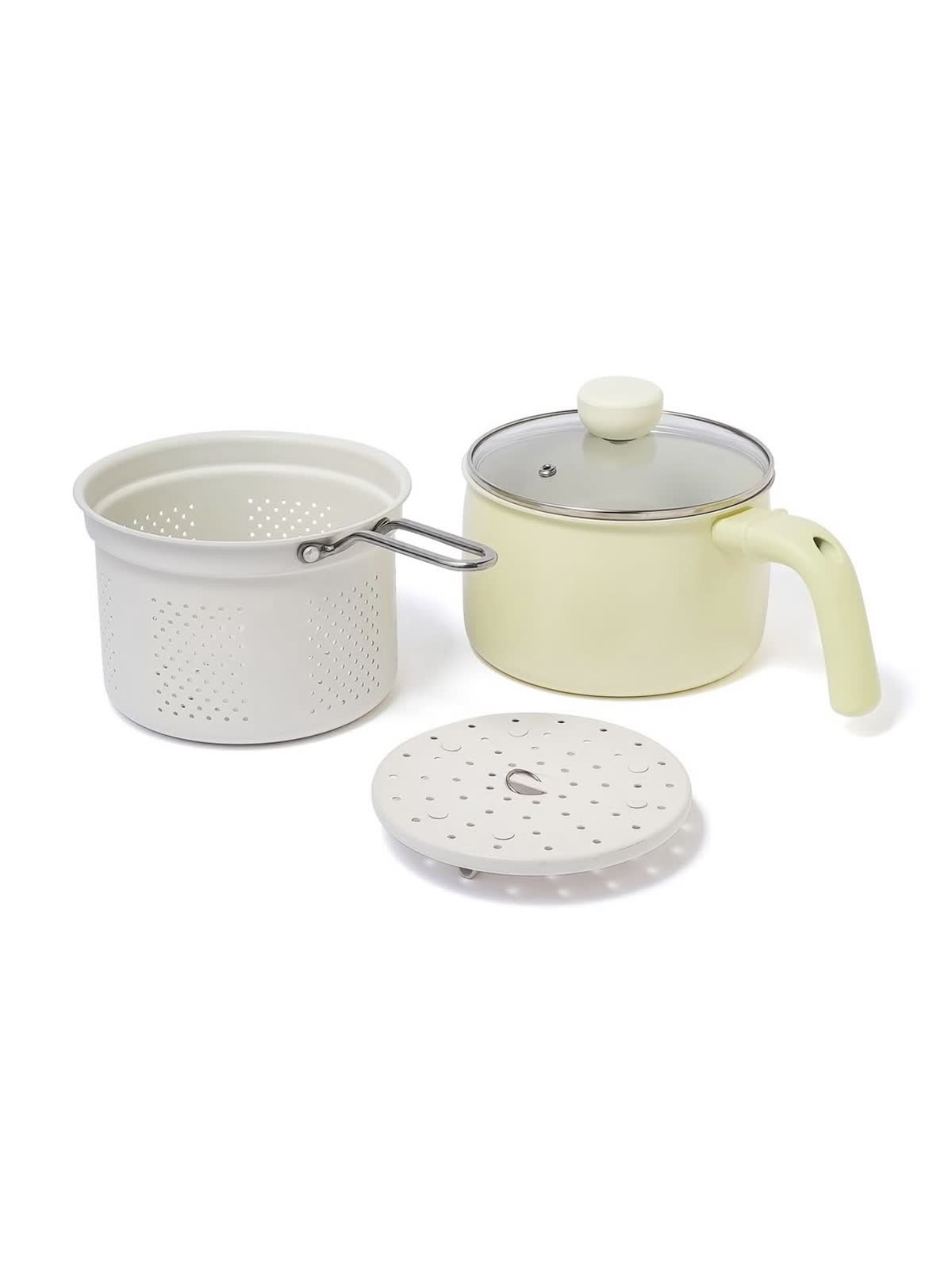 ポット・ストレイナー・スチームプレート・ガラス蓋がセットになった、マルチポット4点セットです。