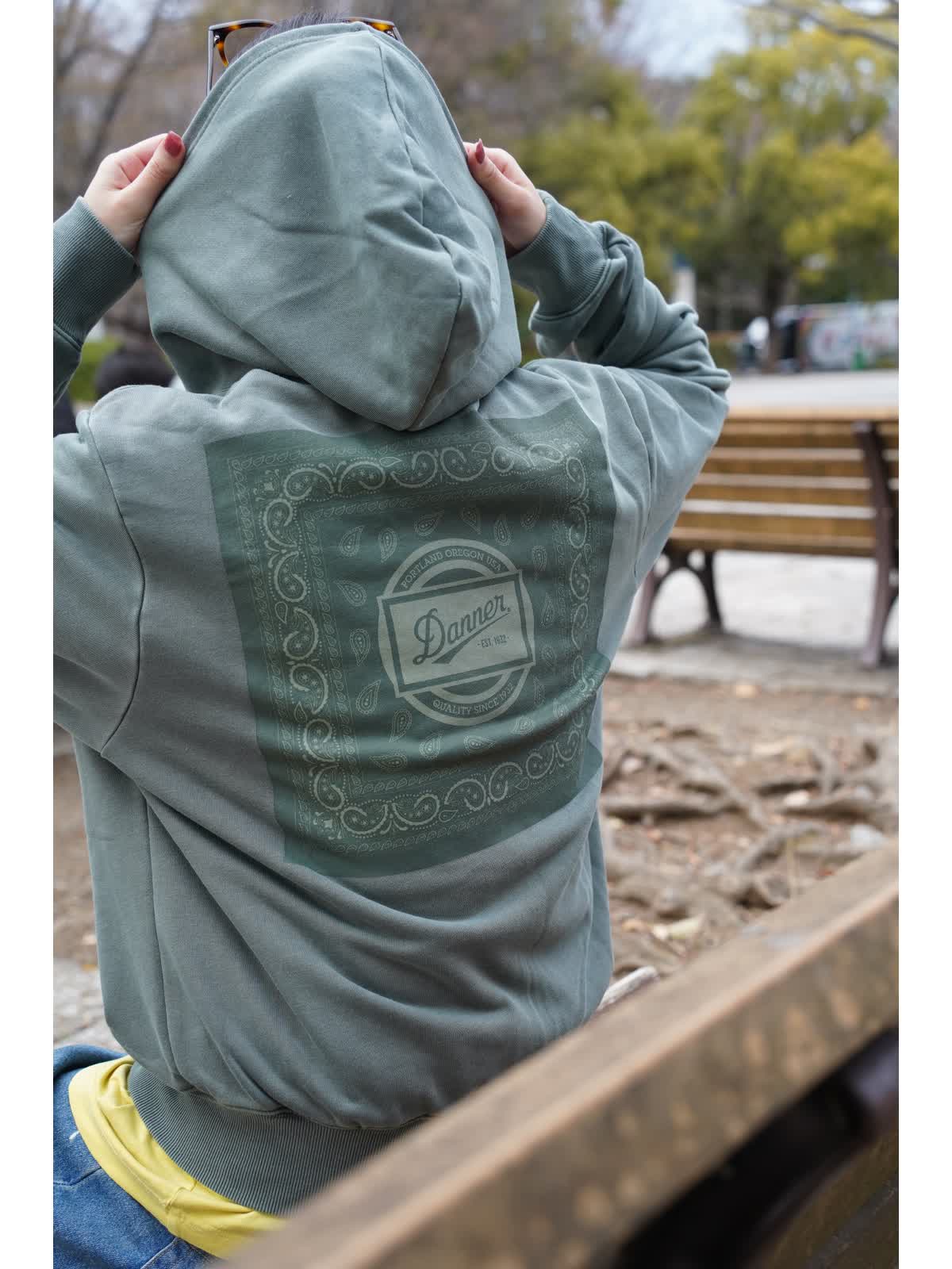 背面には、インパクトのあるバンダナ柄がプリントされた、存在感のあるデザインです。
