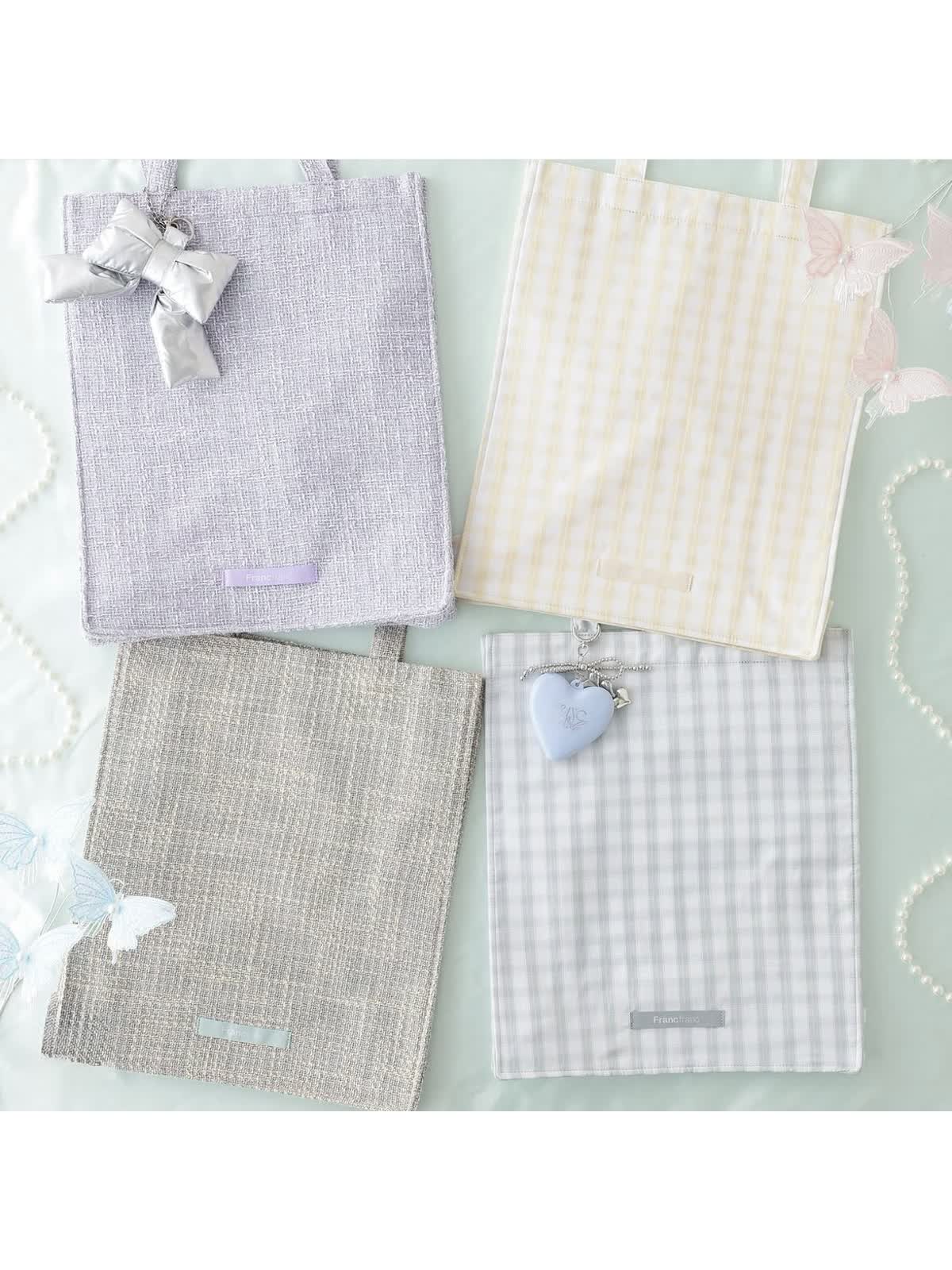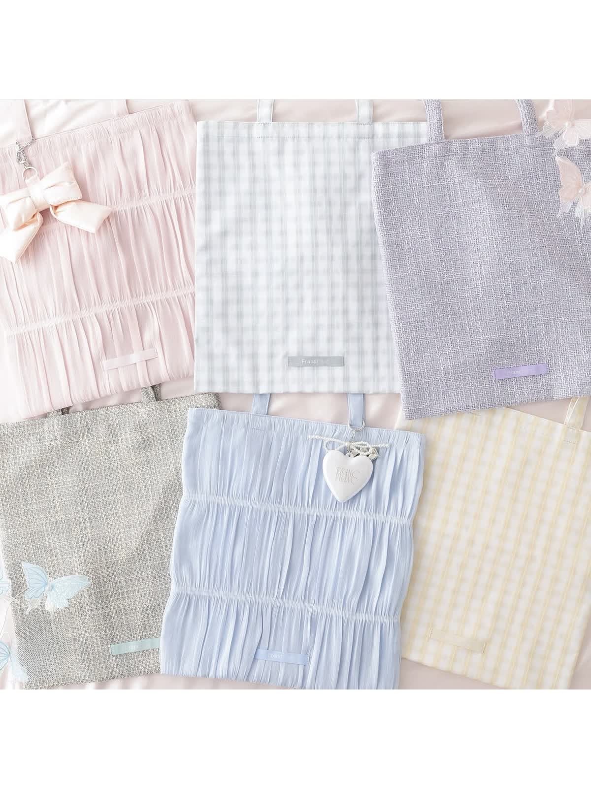 オーガンジーやツイード、ギンガムチェックなど春らしい生地とカラーを使用したトートバッグです👜🌸