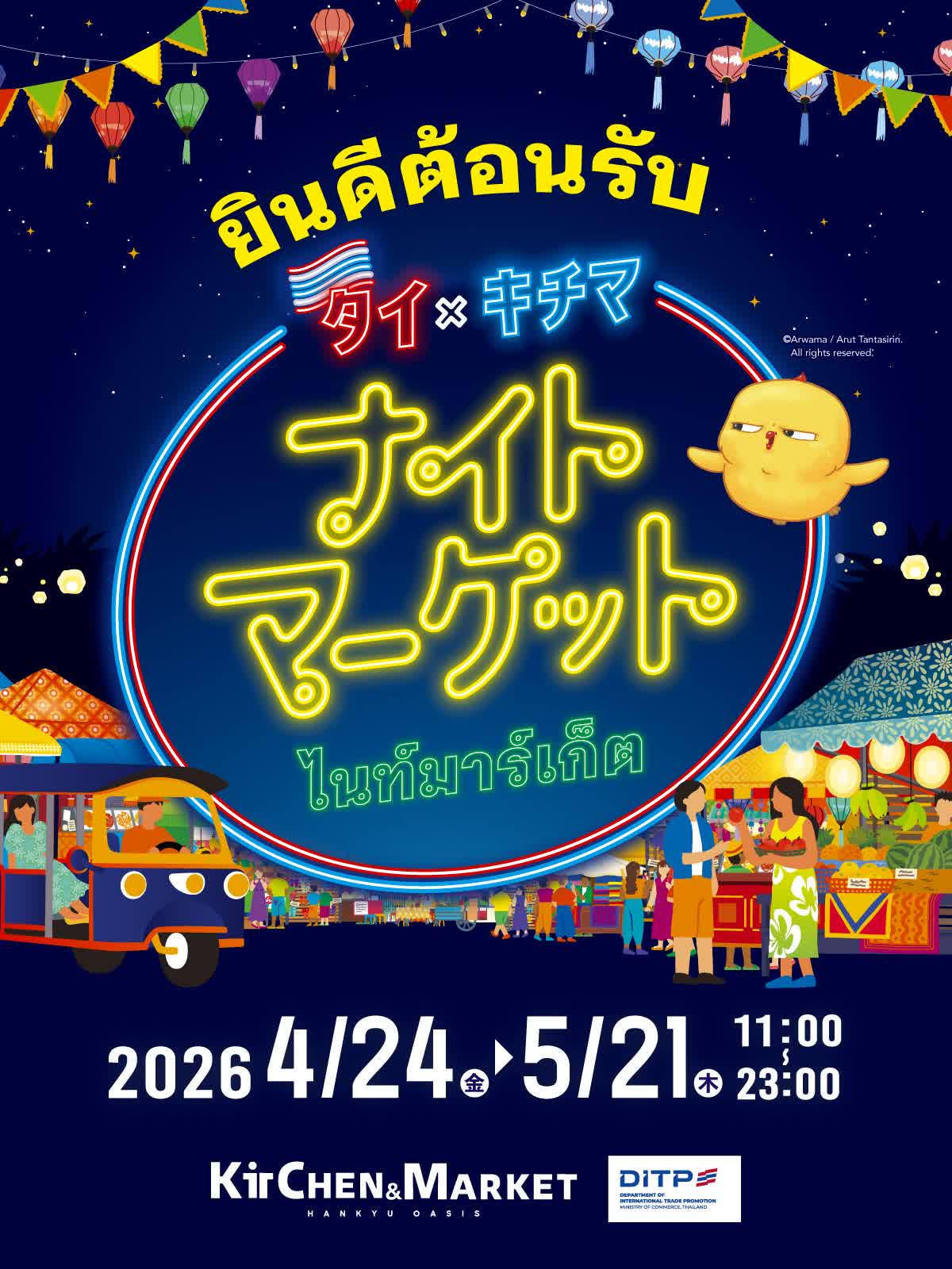 タイ×キチマ「ナイトマーケット2026」 開催! ●主催:タイ王国大阪総領事館 商務部 各イベントの詳細は、追ってご紹介していきますので お楽しみに~ (^o^)/