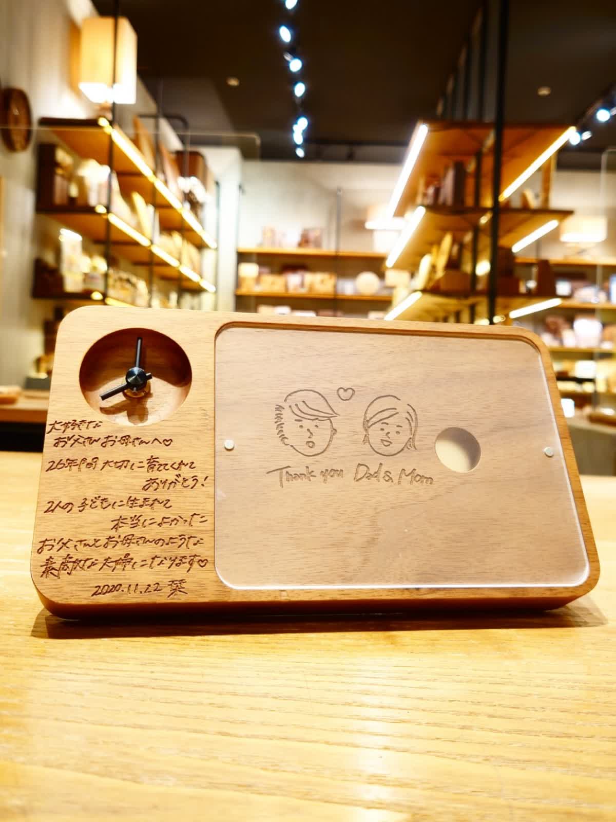 ルクア イーレ 7F ハコアダイレクトストア 当店では、ご自身で書いた手書きのメッセージやイラストを、そのまま商品に刻印することができます♪ 結婚式でご両親へお渡しする贈り物に入れたり、送別品として数人の寄せ書きを入れたりと人気です☆ 手書きなどのオリジナル刻印は、商品代金にプラス刻印費2,640円(税込)です! 約1週間でお渡しできます◎ 詳細は、当店へお気軽にお問い合わせください。 ショップニュース⼀覧