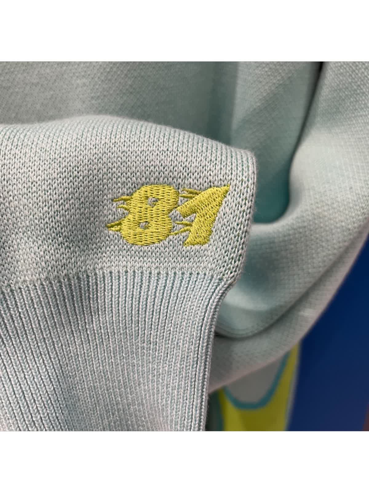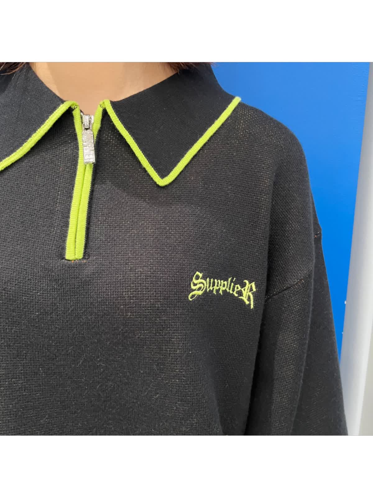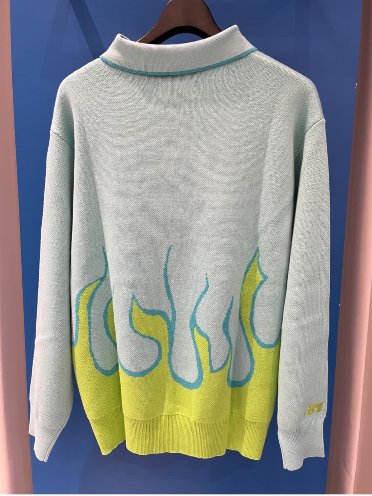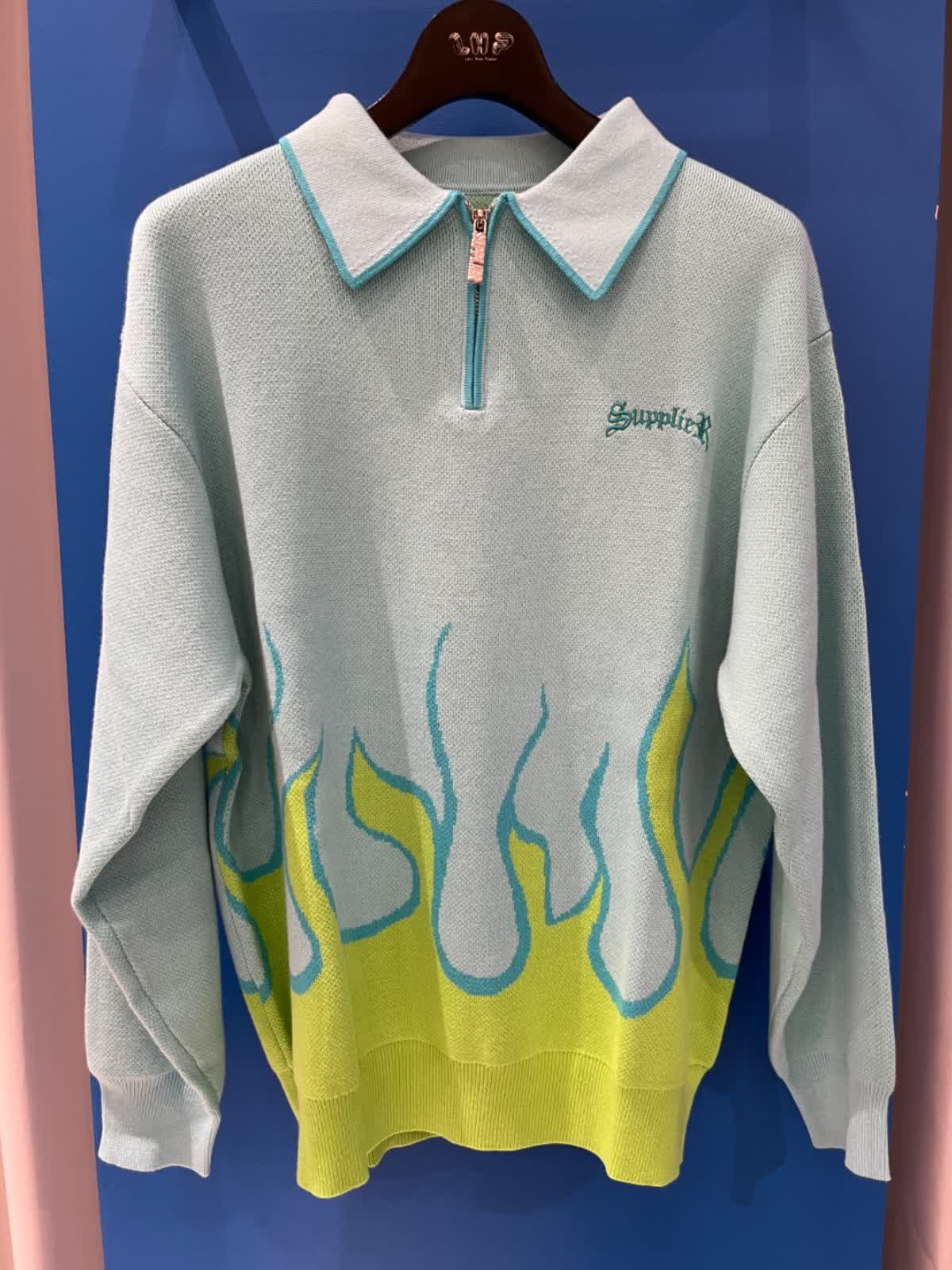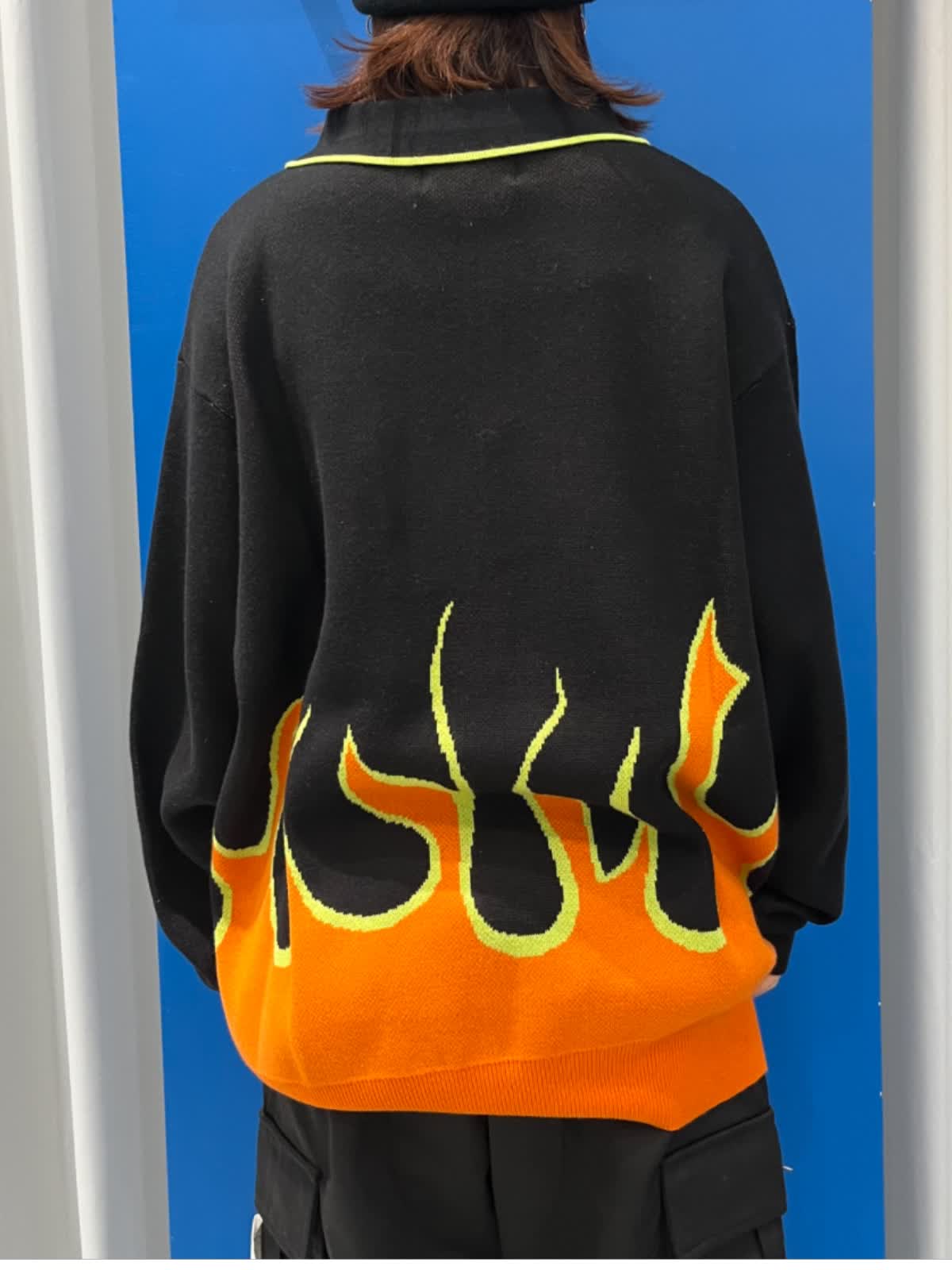 燃えたぎった炎のデザインが映えるハーフジップニットです☺︎