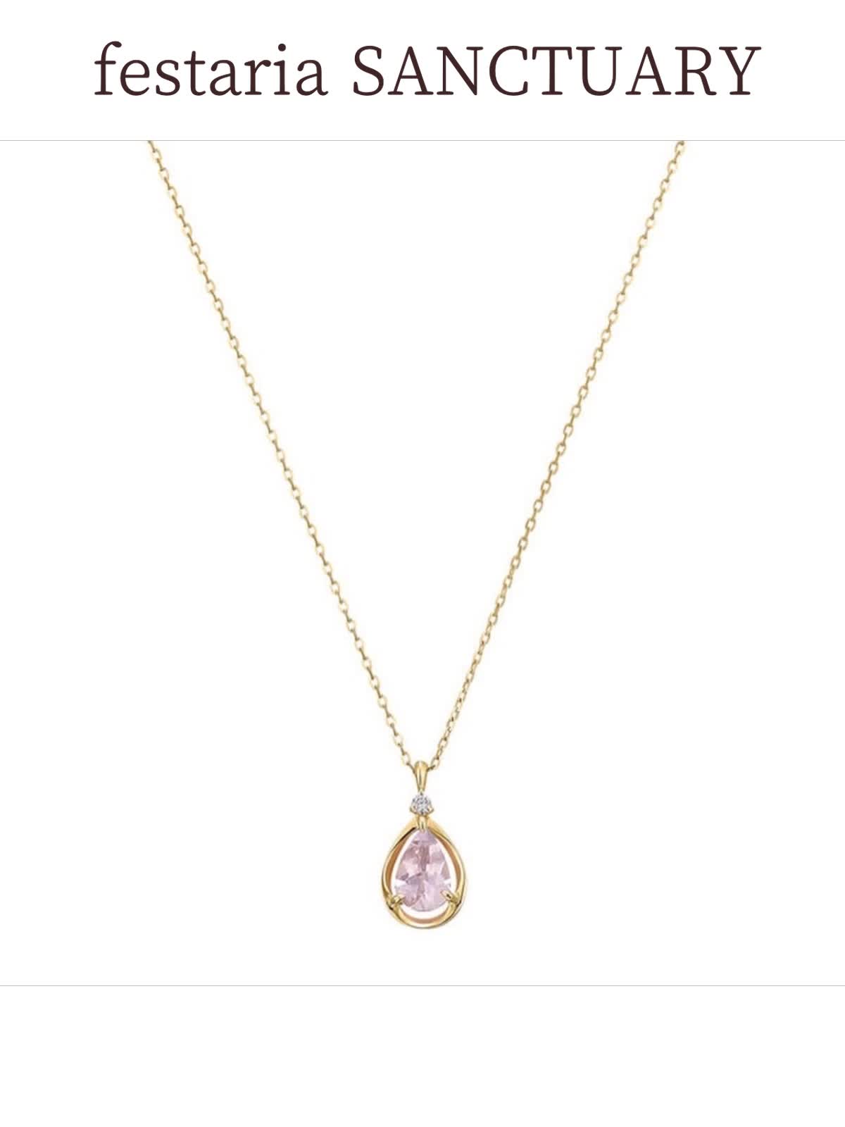 ピンクの石に合わせてピンクゴールドチェーンで加工を施してるのがポイントに◎