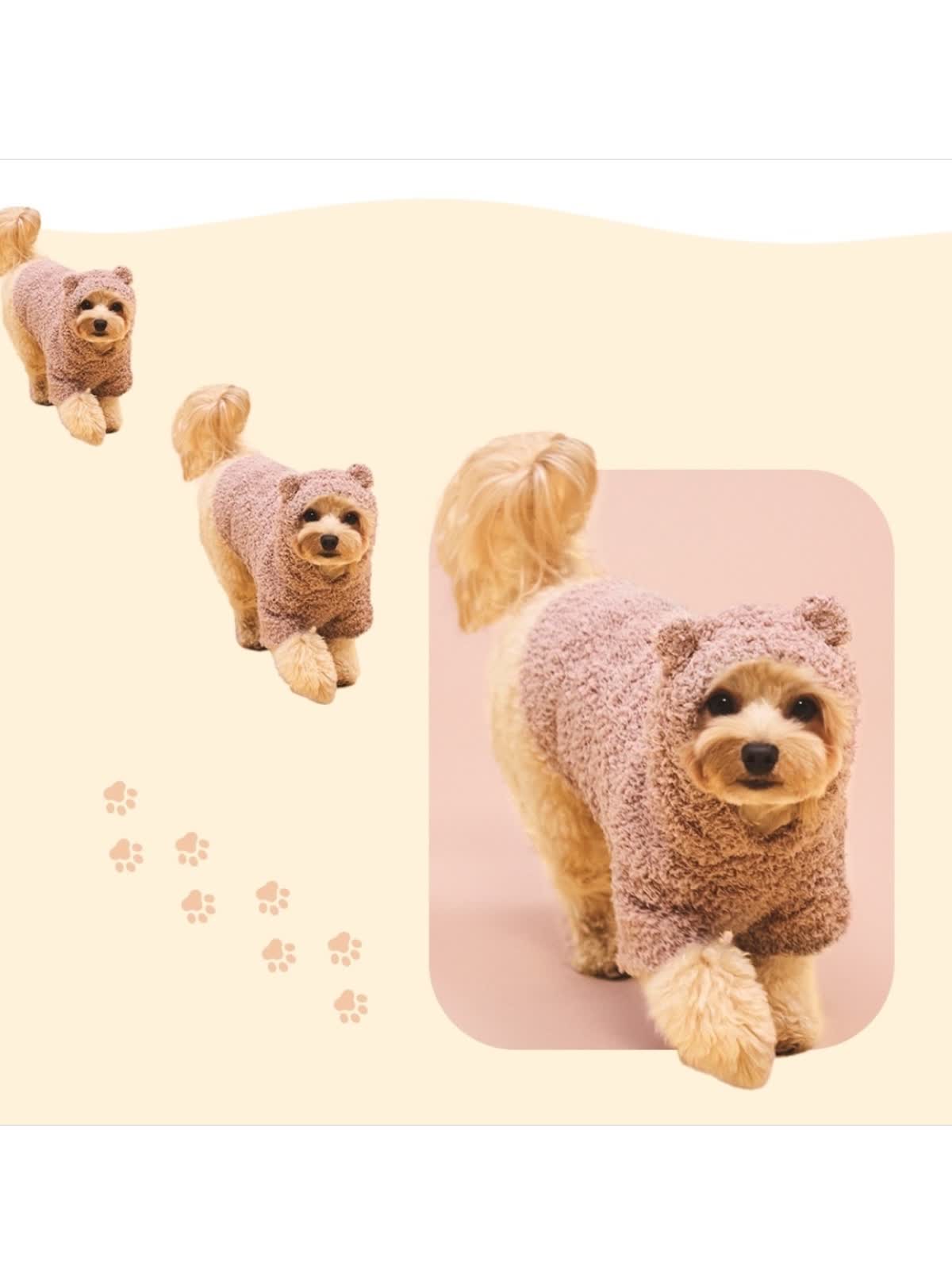 ベア耳を付けたふわふわで暖かな袖付きフーディです。