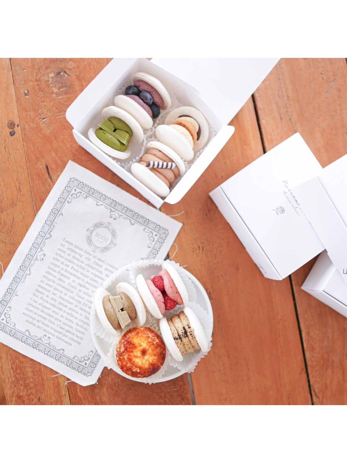真っ白なマカロンコック(皮)には、フレッシュなフルーツや、茶葉などをふんだんに使ったバタークリームがたっぷりサンドされています!