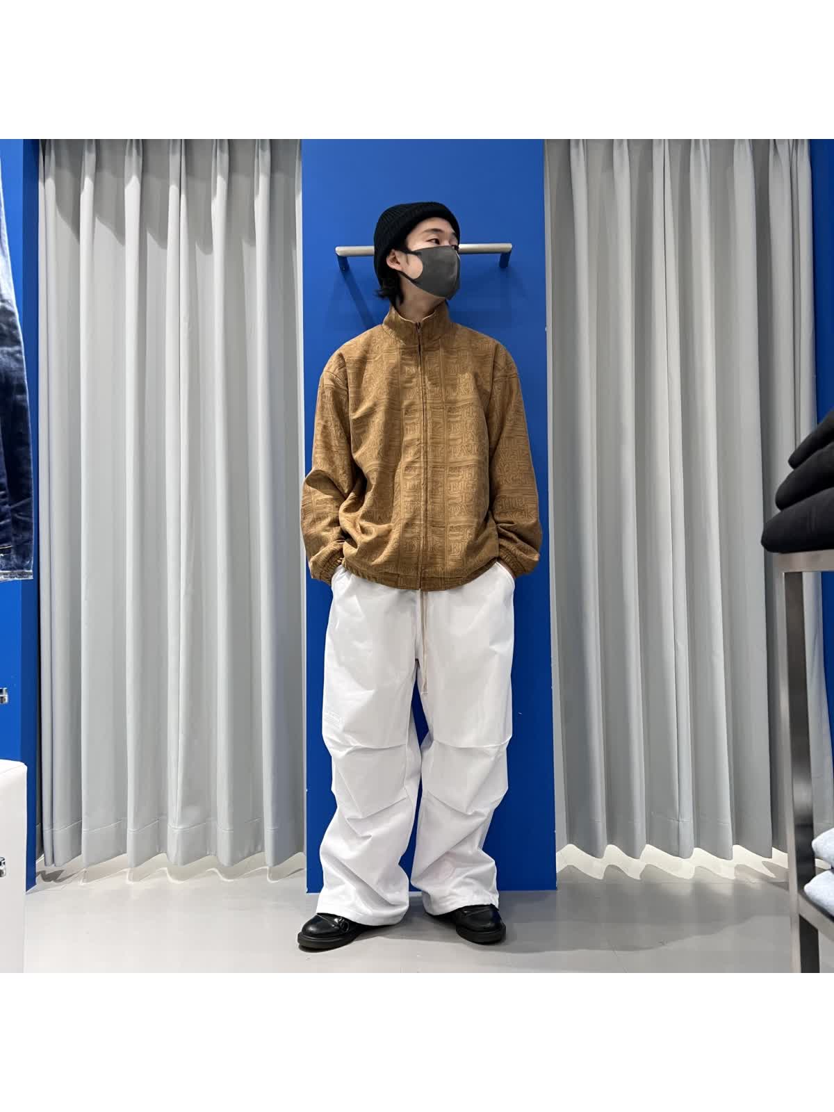 トラックじゃゲットのカッチリさをパンツで抑えたバランスのとれたコーデだと思います♩꒰ •·̫• ୨୧꒱