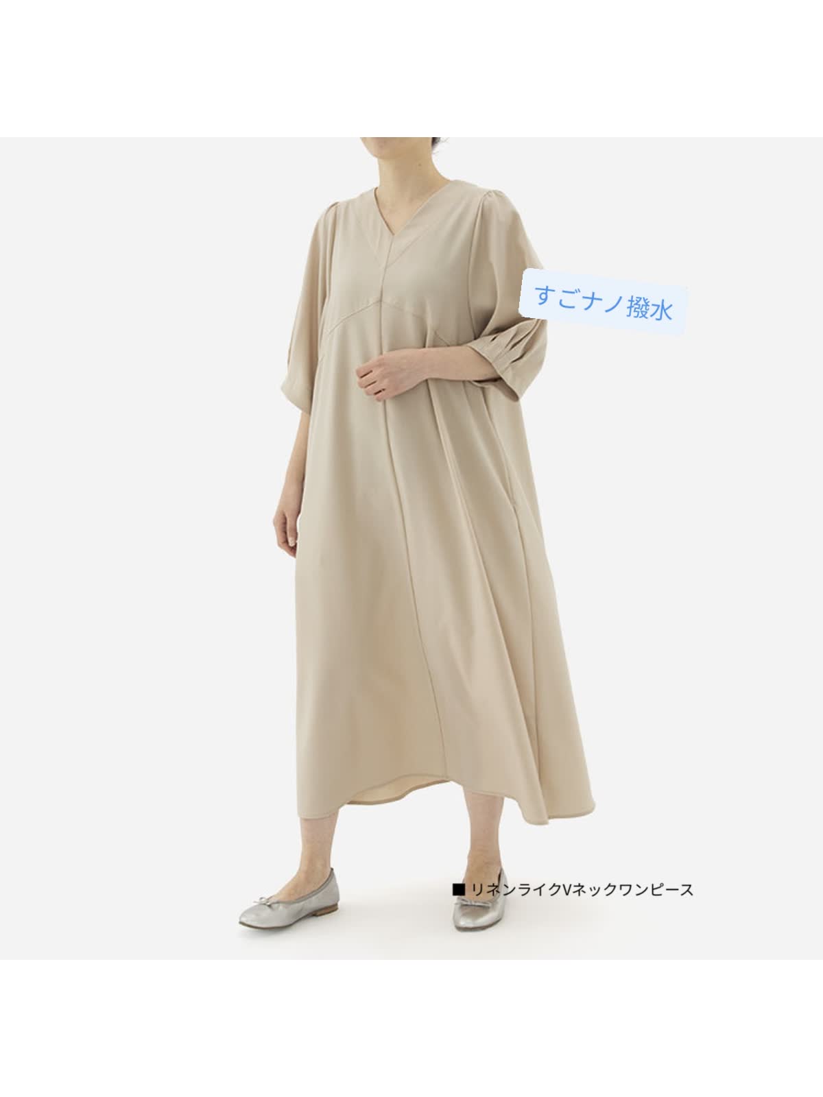 ▫️【すごナノ撥水】リネンライクVネックワンピース