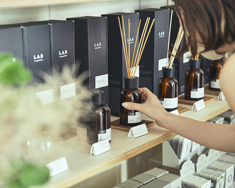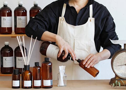 髙木:ルームフレグランスの量り売りをベースにしたいと考えています。基礎となる40種類ほどの香りを用意して、お客様自身で「自分の好き」を探してもらいます。店内スタッフがお手伝いをするので安心してくださいね。さらに、使いたい場所や季節によって香りを変えたいというような様々なご要望をお伺いし、必要なオイルの量をご提案します。何よりも自分の「本当に好きな香りは何か」を考える時間をつくれたらと思っています。