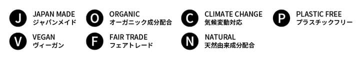 ルクア岡森:その一環なのだと思いますが、スタイルテーブルさんは商品に対して「ジャパンメイド」「オーガニック成分配合」「気候変動対応」「プラスチックフリー」「ヴィーガン」「フェアトレード」「天然由来成分配合」の7つのテーマを一目でわかりやすく表示されていますね。