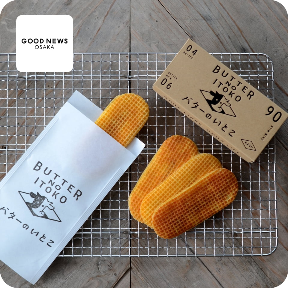2022年、栃木県那須に誕生した持続可能なまち“GOOD NEWS”を体現するコンセプトショップが大阪初出店。那須の新銘菓「バターのいとこ」や、ホエイ(乳清)を利活用した「ブラウンチーズブラザー」を展開。