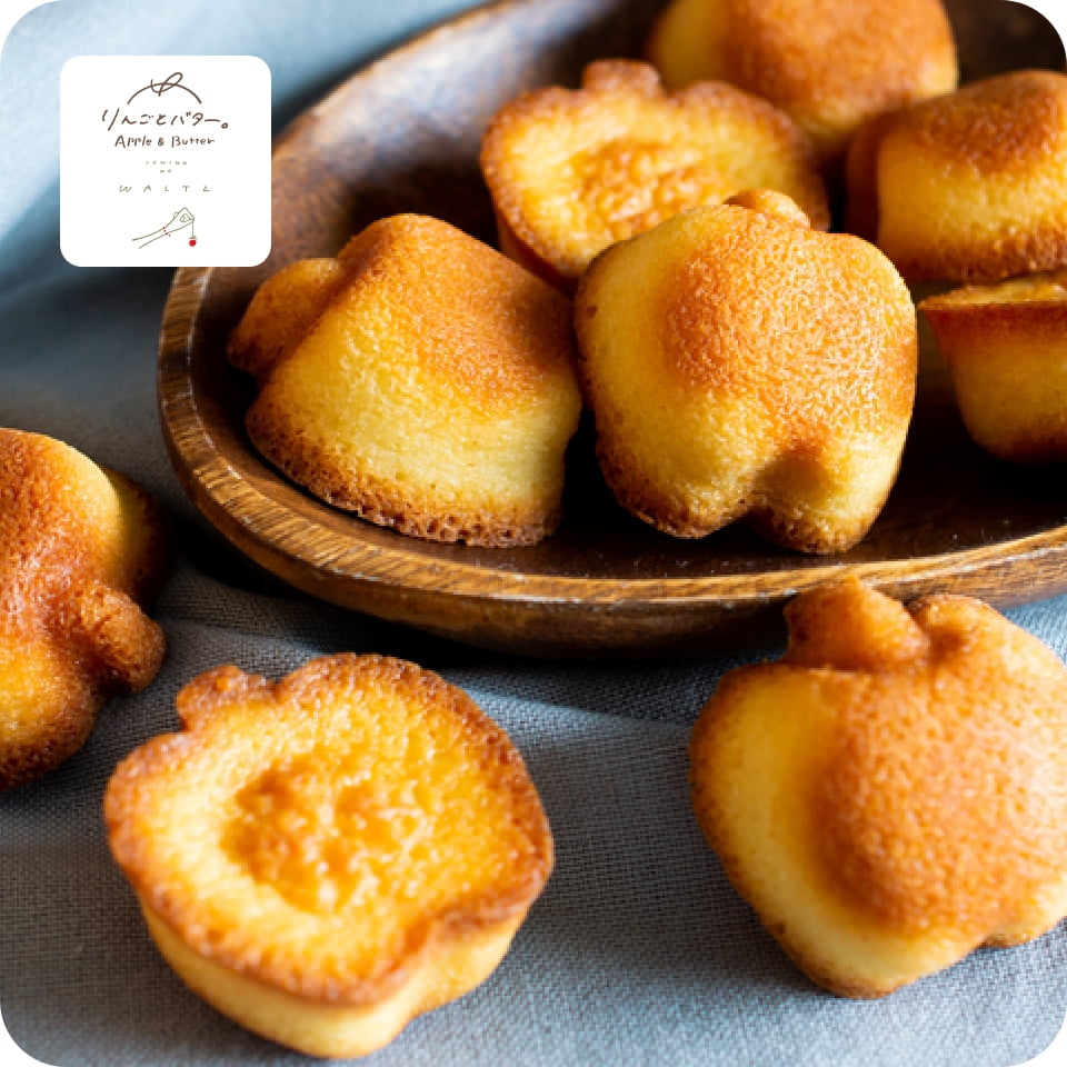 外はサクッと中はしっとりのりんご型フィナンシェ、苺のホイップチョコを芳醇なバター香るクッキーでサンドしたサクサク食感が魅力のバターサンドをはじめお客様の『欲しい』を満たすお菓子を取り揃えております。