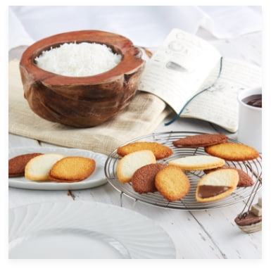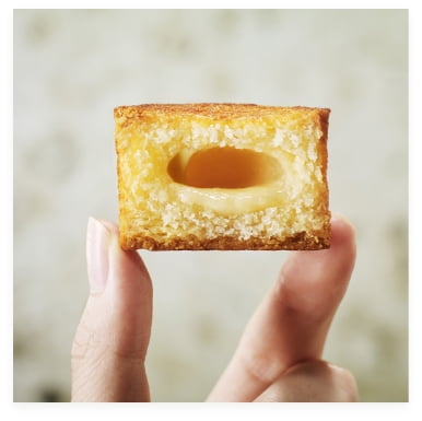 北海道産バターのコクと爽やかな酸味と芳香を感じられる発酵バターを使い、食感の異なる2つの生地ガレット・ブルトンヌとフィナンシェにミルクジャムを挟み三層仕立てで焼き上げました。
