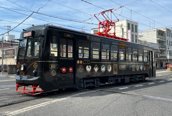 路面電車で岡山城へ向かう