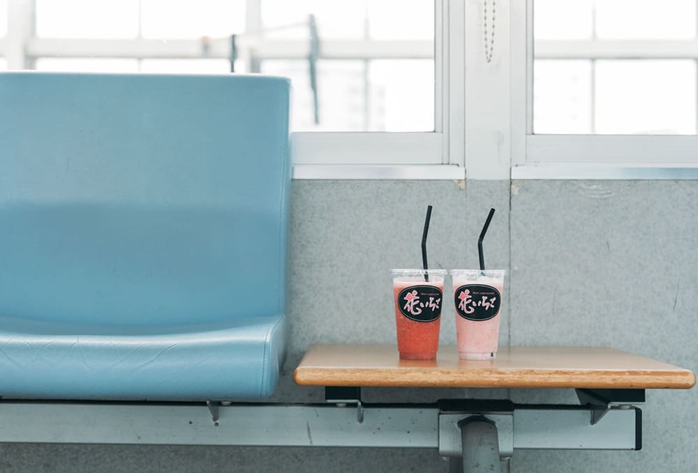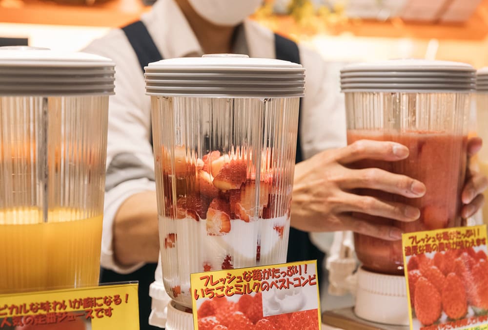 さんすて岡山内の「花いちご」でジュースを買って新幹線へ