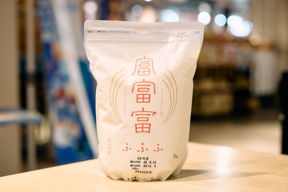 富山県が約15年もかけて開発した自慢のお米。富山の水、富山の大地、富山の人が育てた富山づくしのお米であることを表していて、食べた人が思わず「ふふふ」と微笑み、しあわせな気持ちになってもらいたいという想いが込められているんだそう。