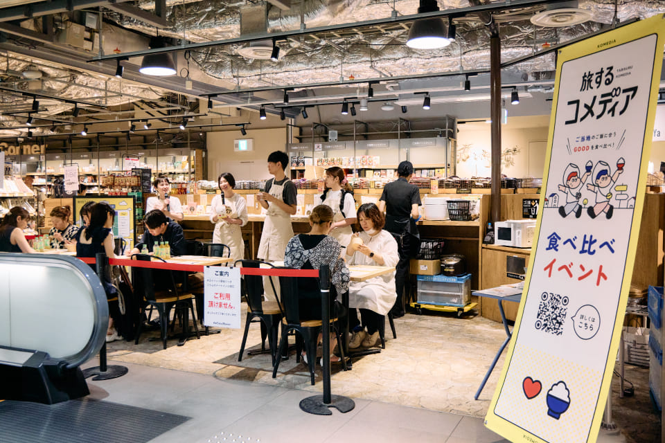 今回も会場は、ルクア大阪B2Fにある「キッチン&マーケット」。そしてもちろん、前回に引き続きご当地のスペシャルなおコメをご用意しましたよ!コメディアですからね。