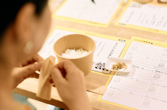 さて、本日の主役たちである富山の「コメにあうGOOD」を一種類ずつ試食して堪能♡神妙な面持ちで吟味する様子は、まるでコンテストの審査員のよう。