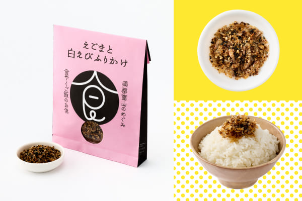 サクサクの食感と白エビの香ばしい風味が高評価。富山でよく栽培されているえごまも相性バッチリで、栄養価も◎ピンク色のパッケージも人気でした!