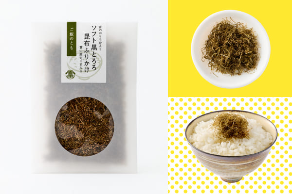 「ふわふわ食感のとろろ昆布でいくらでもいけちゃう!」とのコメントも。昆布の表面に近い部分で作られる「黒とろろ」は、味も旨味もしっかりめで◎