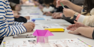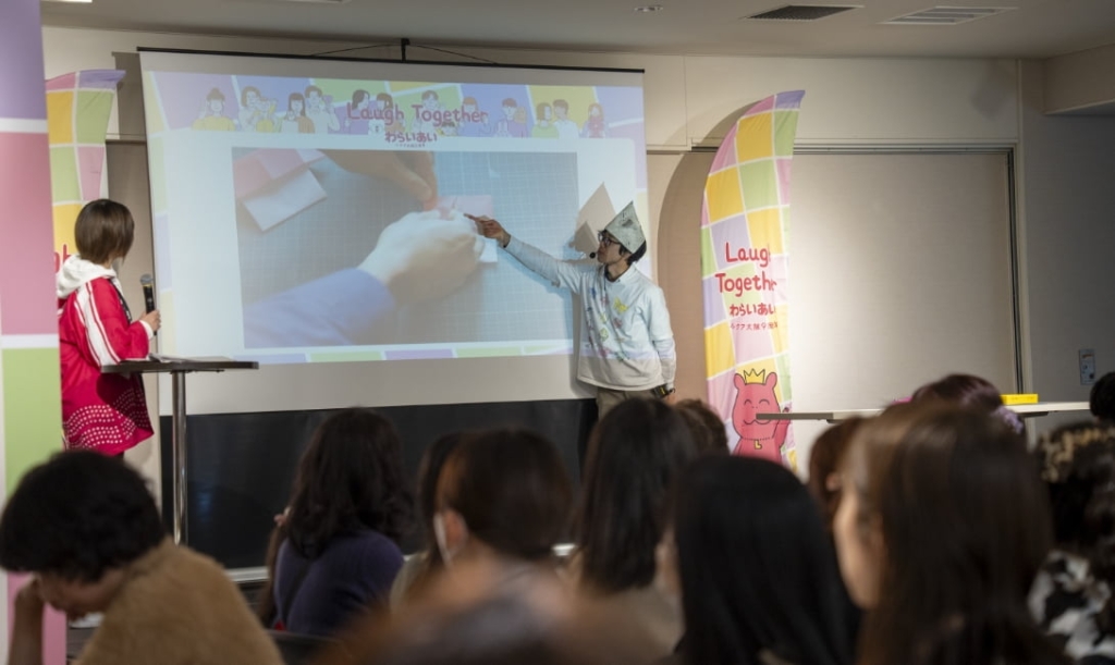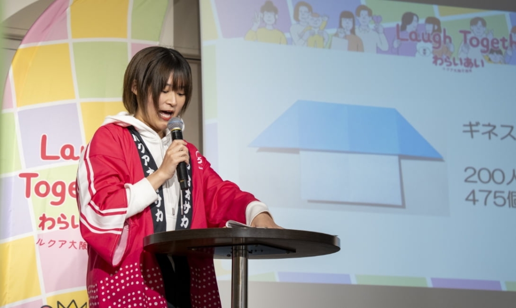 イベント当日、LUCUAホールに159名の挑戦者を迎えて折り紙のレクチャーを行い、記録に挑みました。