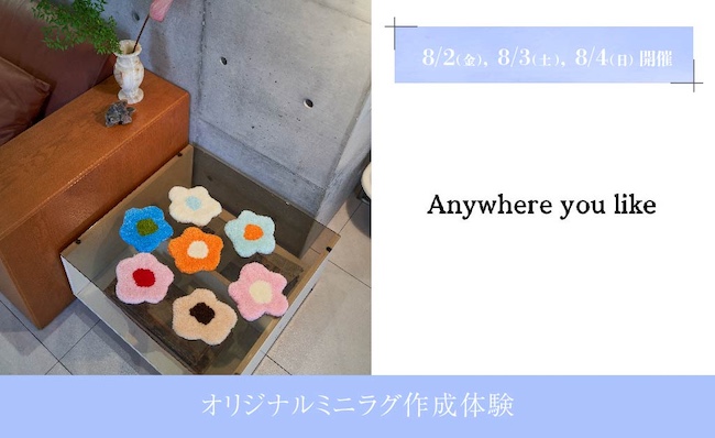 アートイベントや、お花のワークショップ、ラグのタフティング、香りのイベントなど