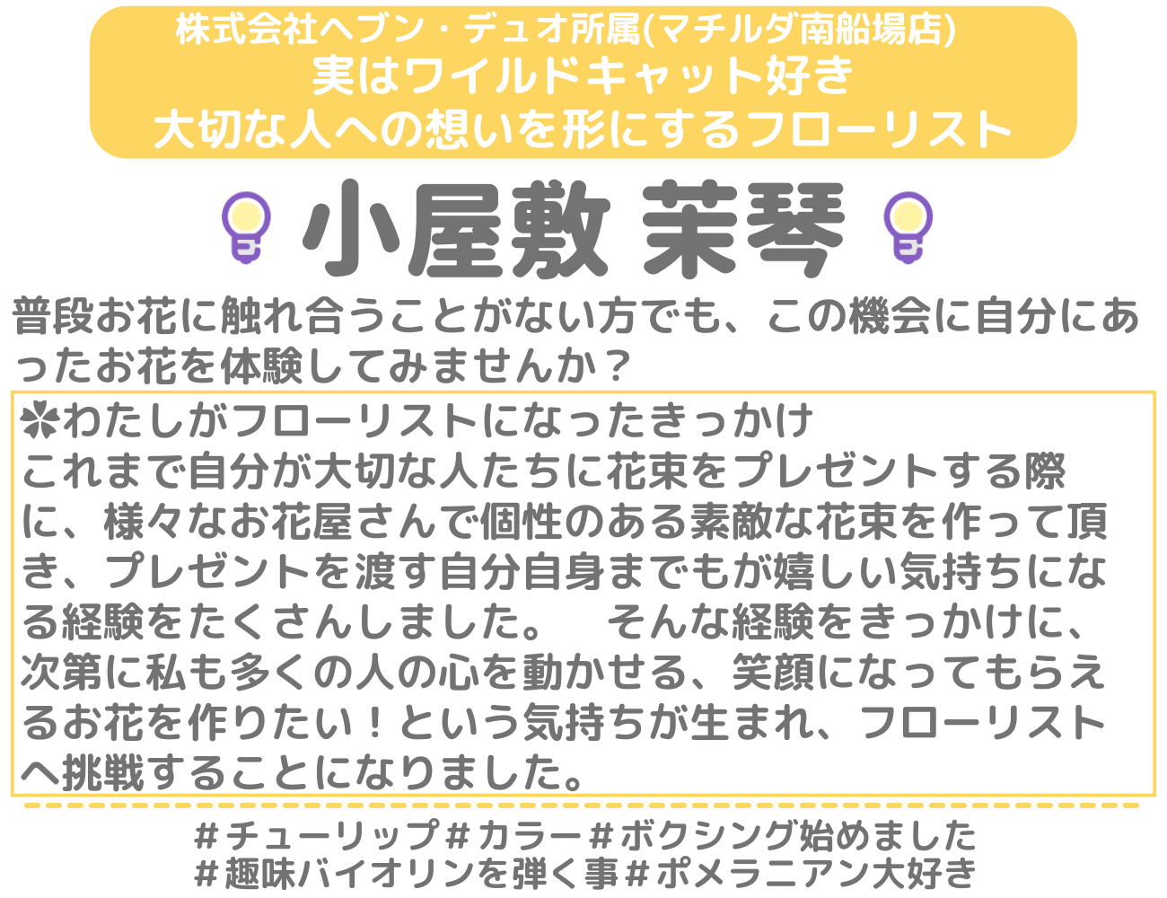 花束をつくる人の中から1名をお選びいただきご予約ください。