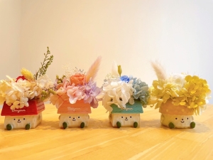 水を必要としないので、さまざまなアレンジが可能で、選ぶ色で全く違ったアレンジになります!