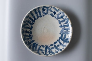 炎によって変化する土や釉の表情と、カリグラフィーのスタイルが融合された陶器。