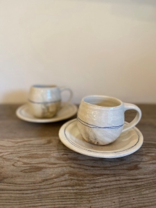 画像1枚目 【古谷製陶所】ゴス線エッグマグ 2,860円(税込)/ ゴス線エッグソーサー 1,980円(税込)