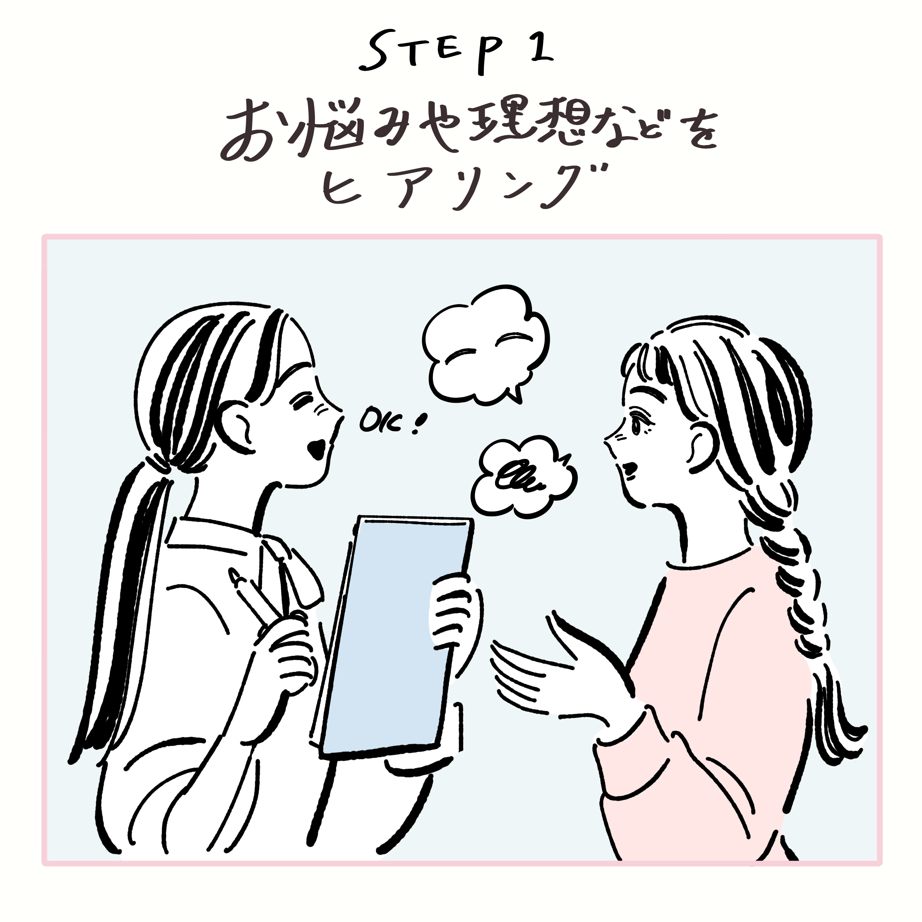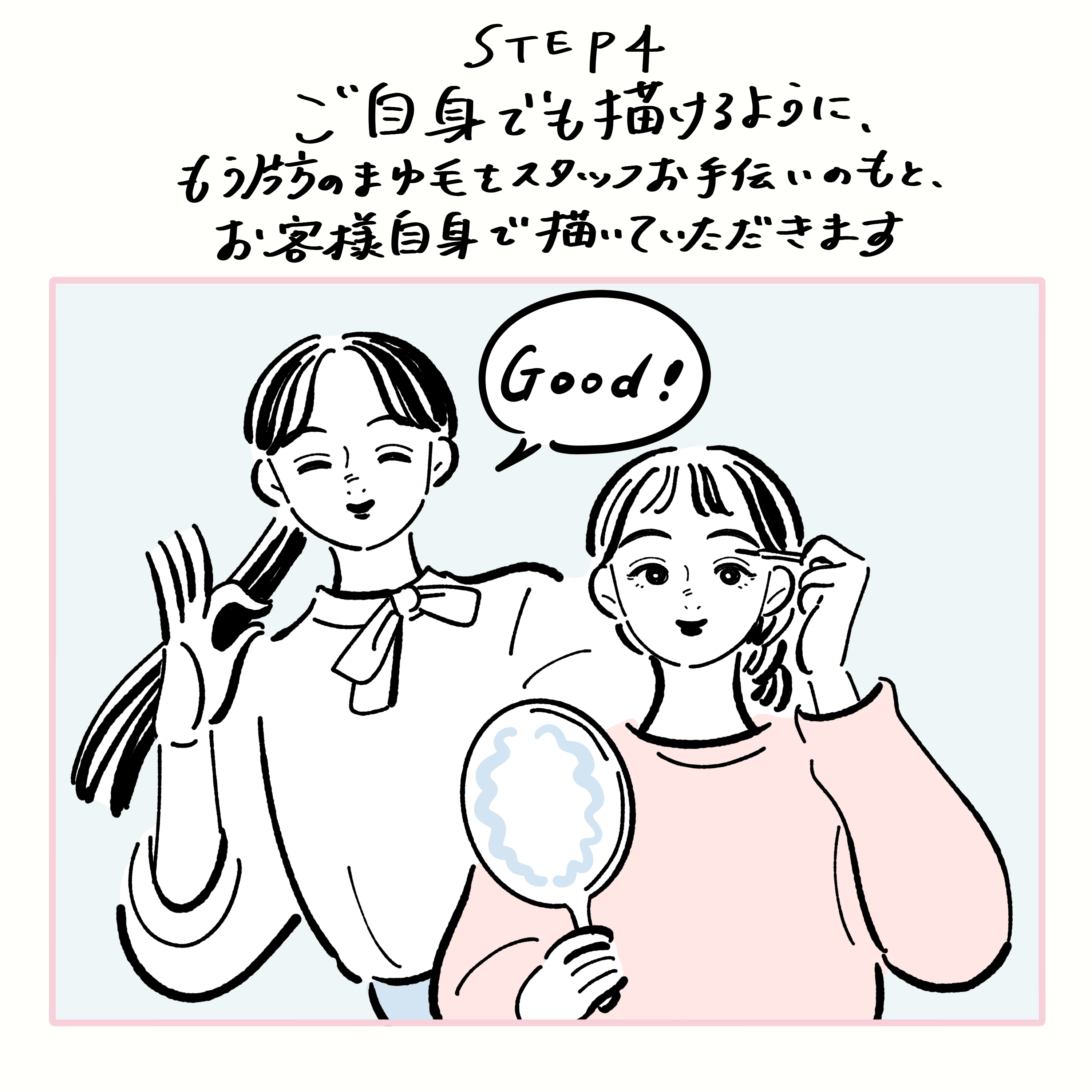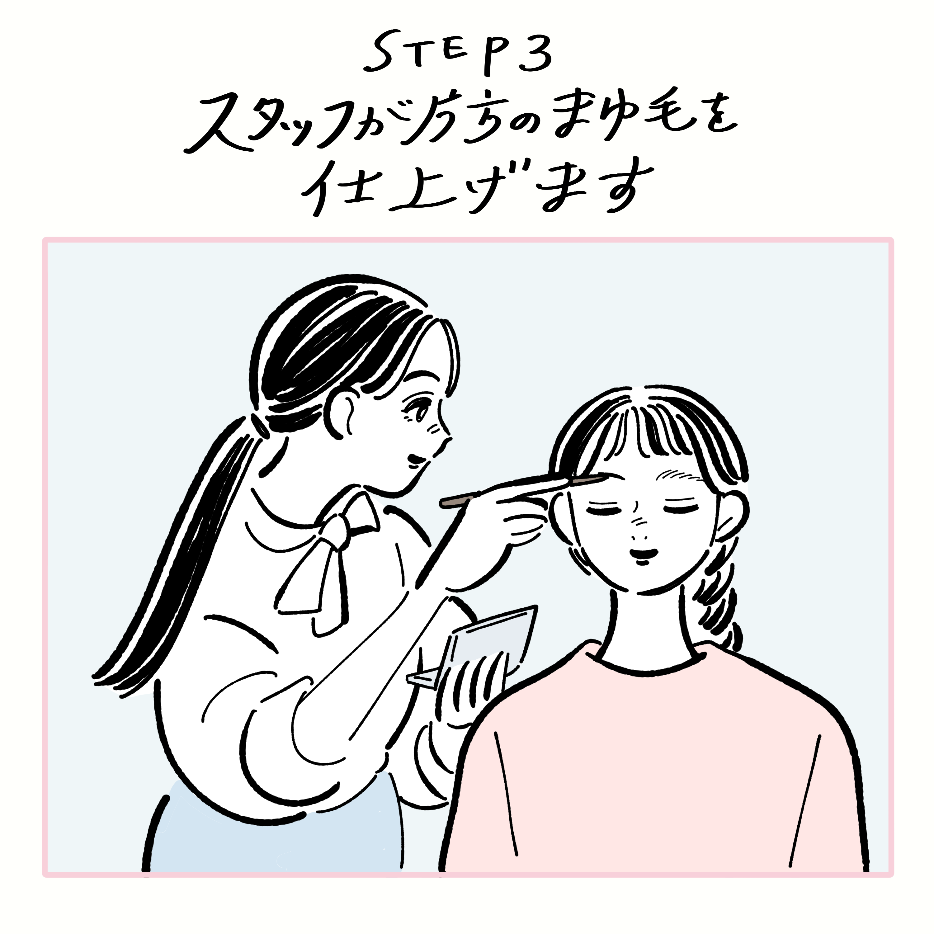 当日は、あなたの”まゆ毛”に関するお悩みや、理想のまゆ毛などをお伺いしながら、実際に眉メイクを行います。