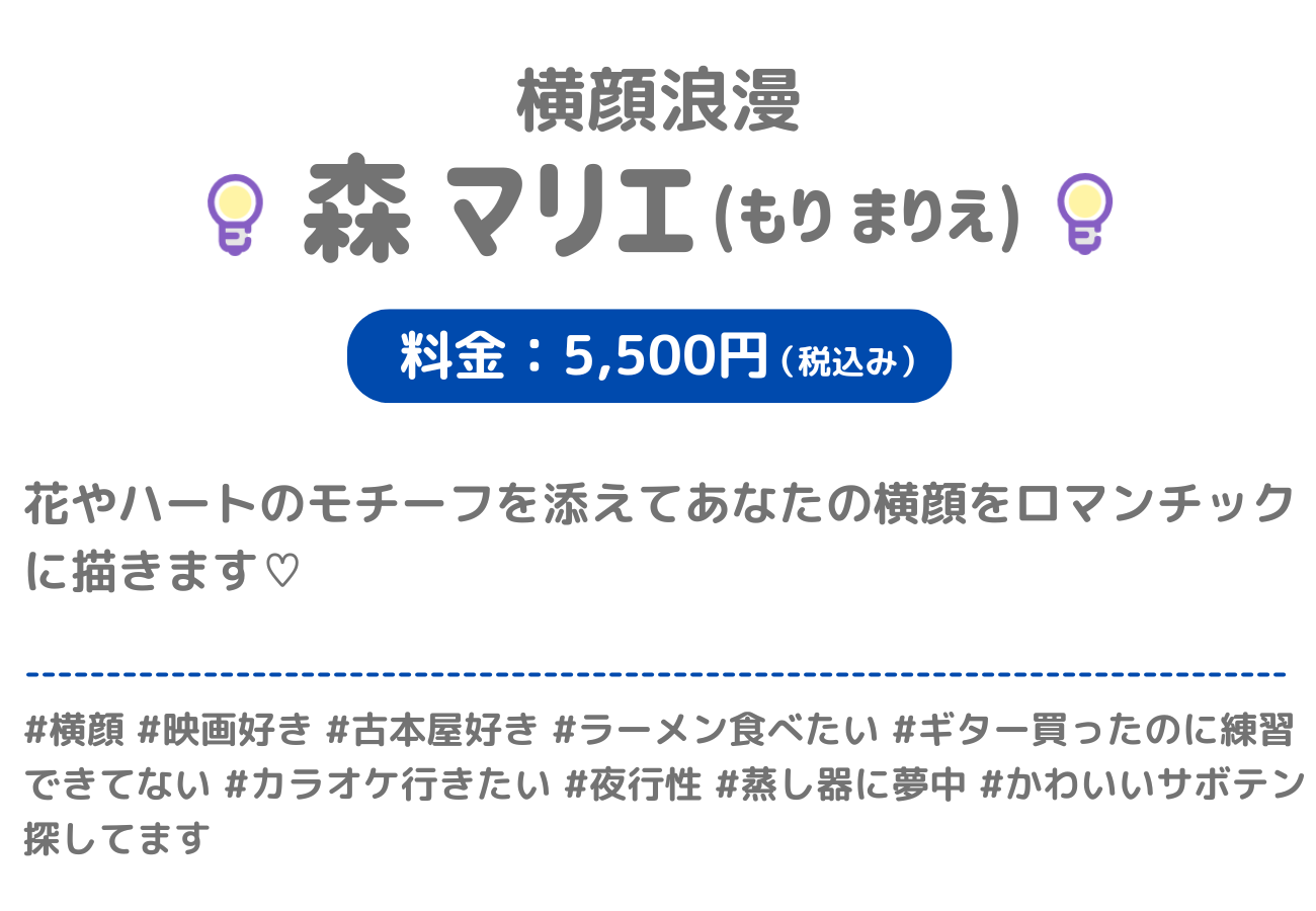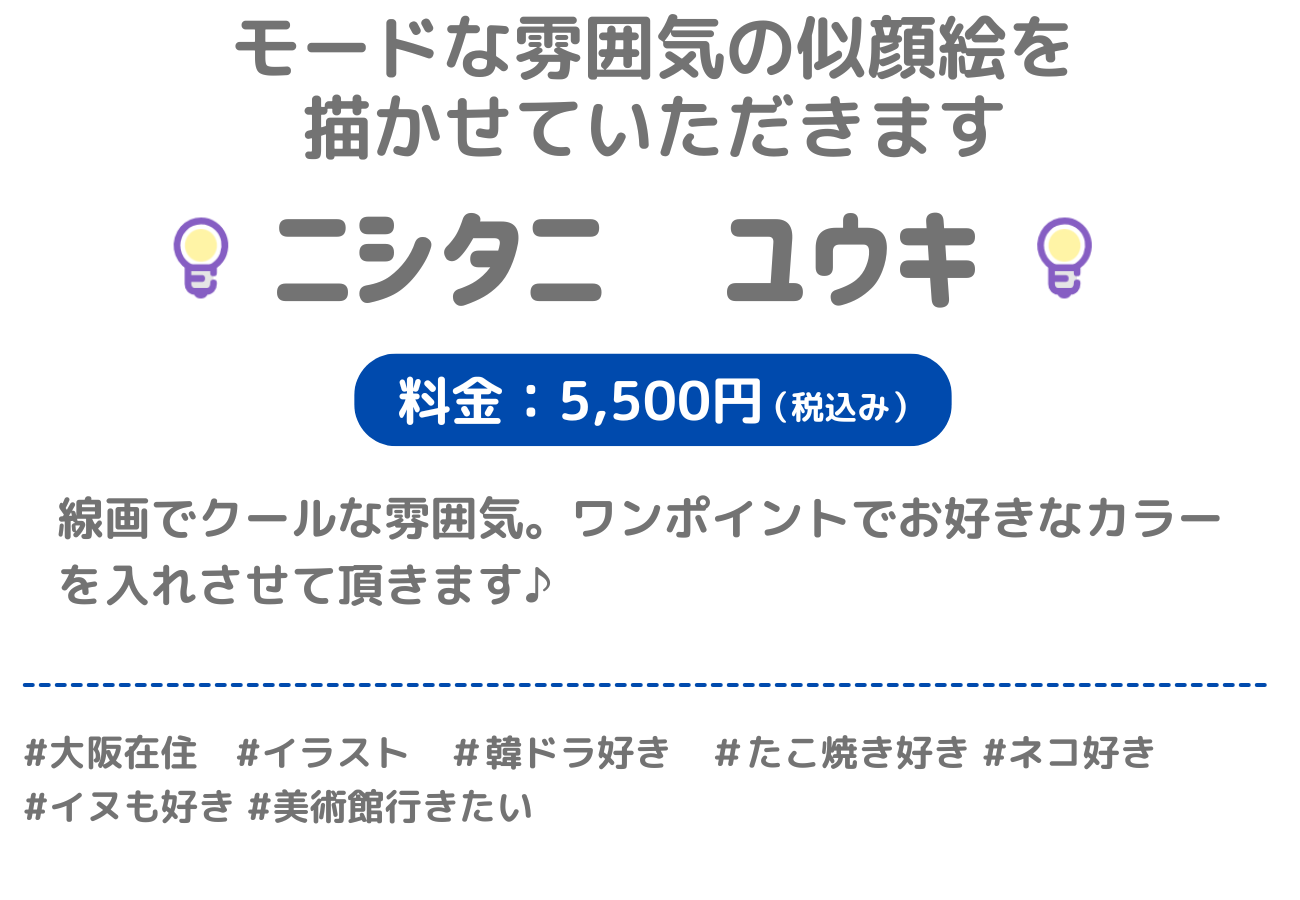 人気の作家・イラストレーターがSNSのアイコン用にあなたの似顔絵を描くお店です。