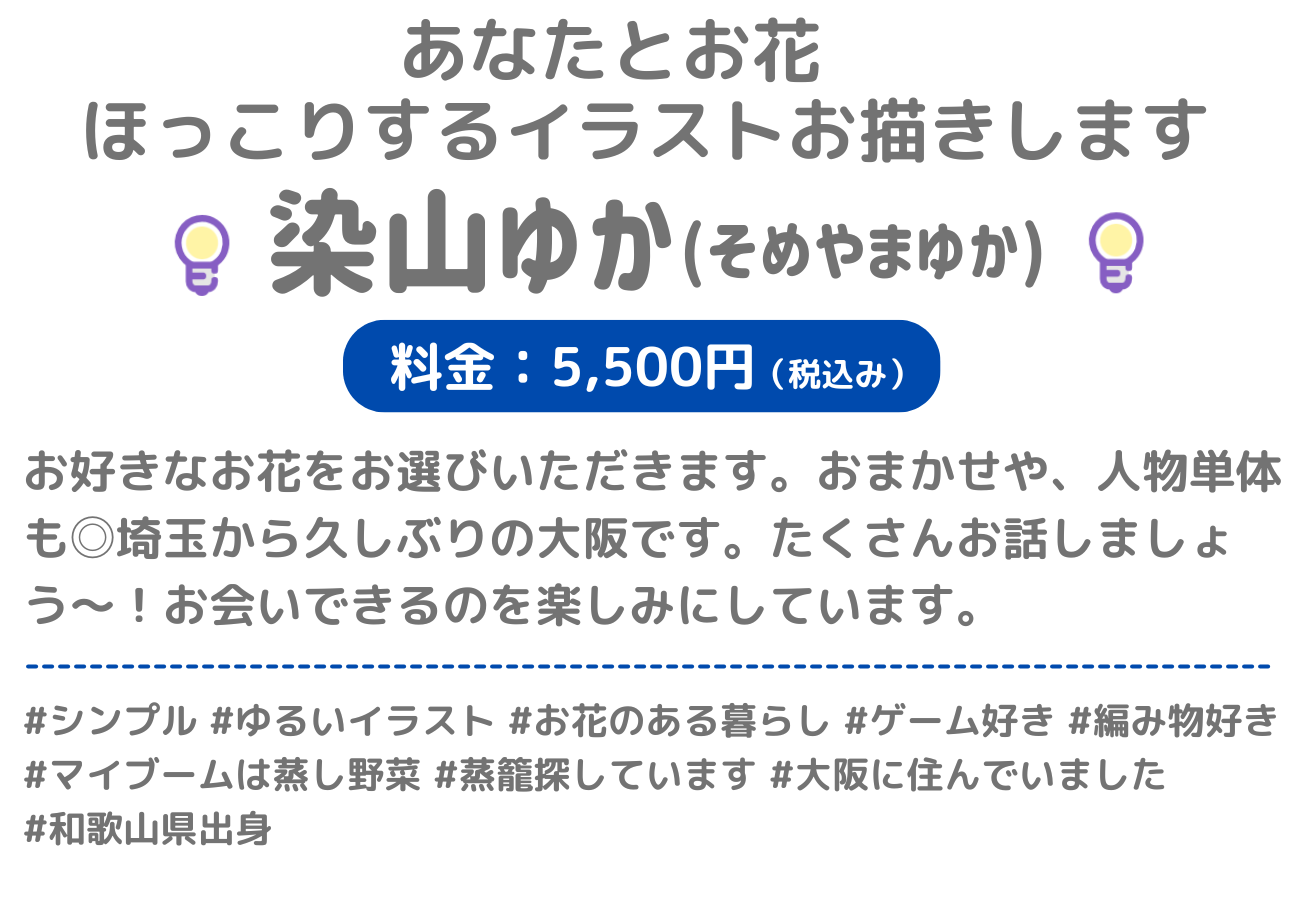 ※1つのご予約につき、1名様をお描きします。2名様はそれぞれ2枠をご予約ください。