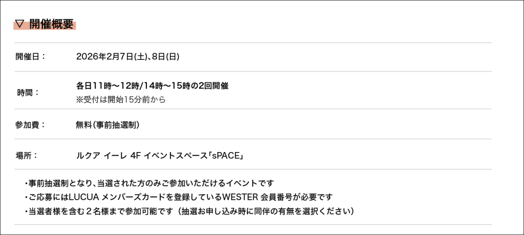 当選発表は1月25日(日)にWESPO及びメールにてお知らせいたします。